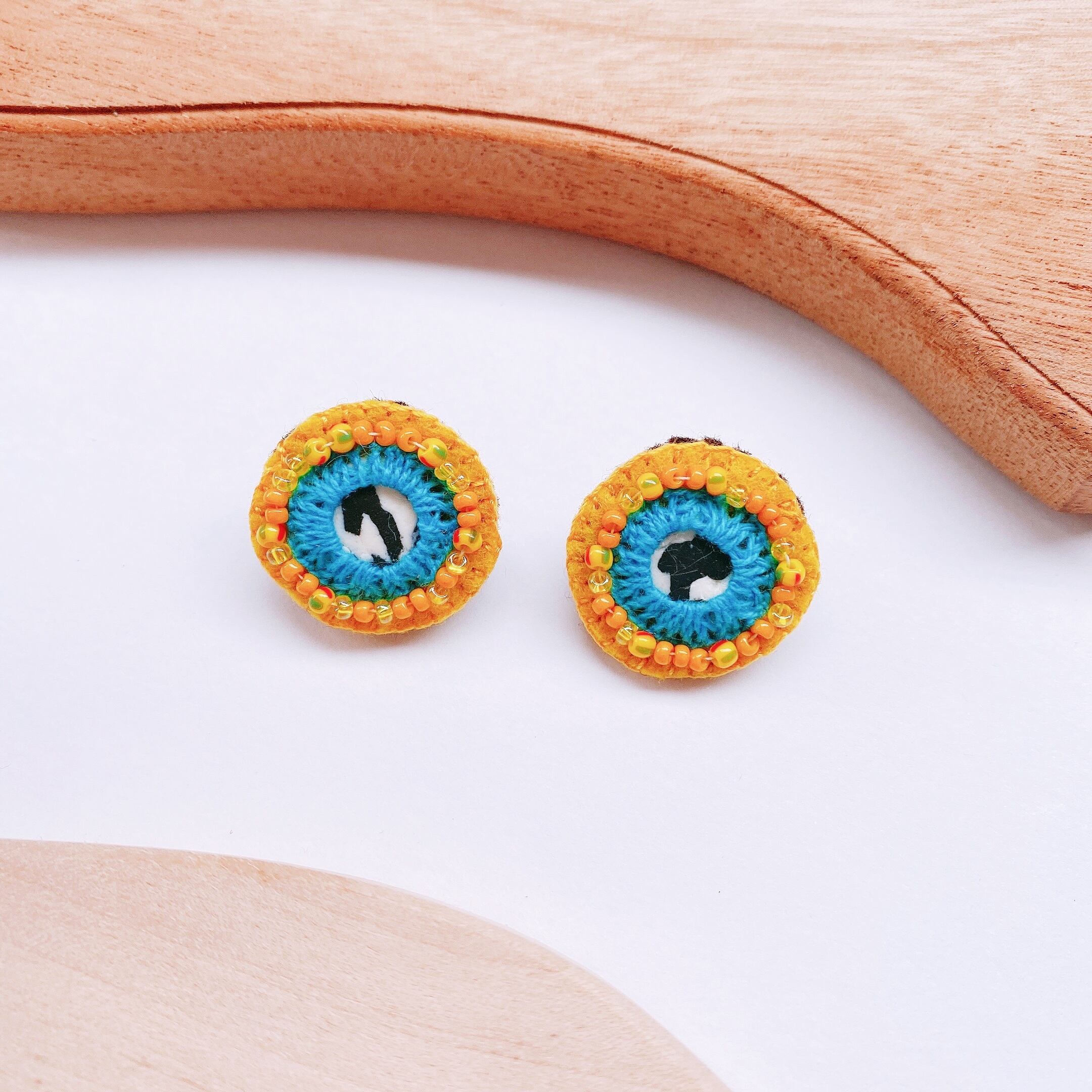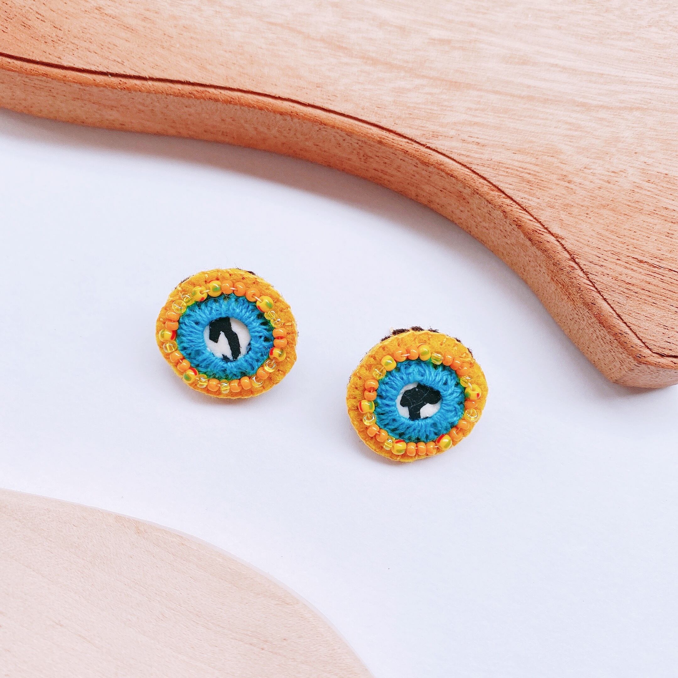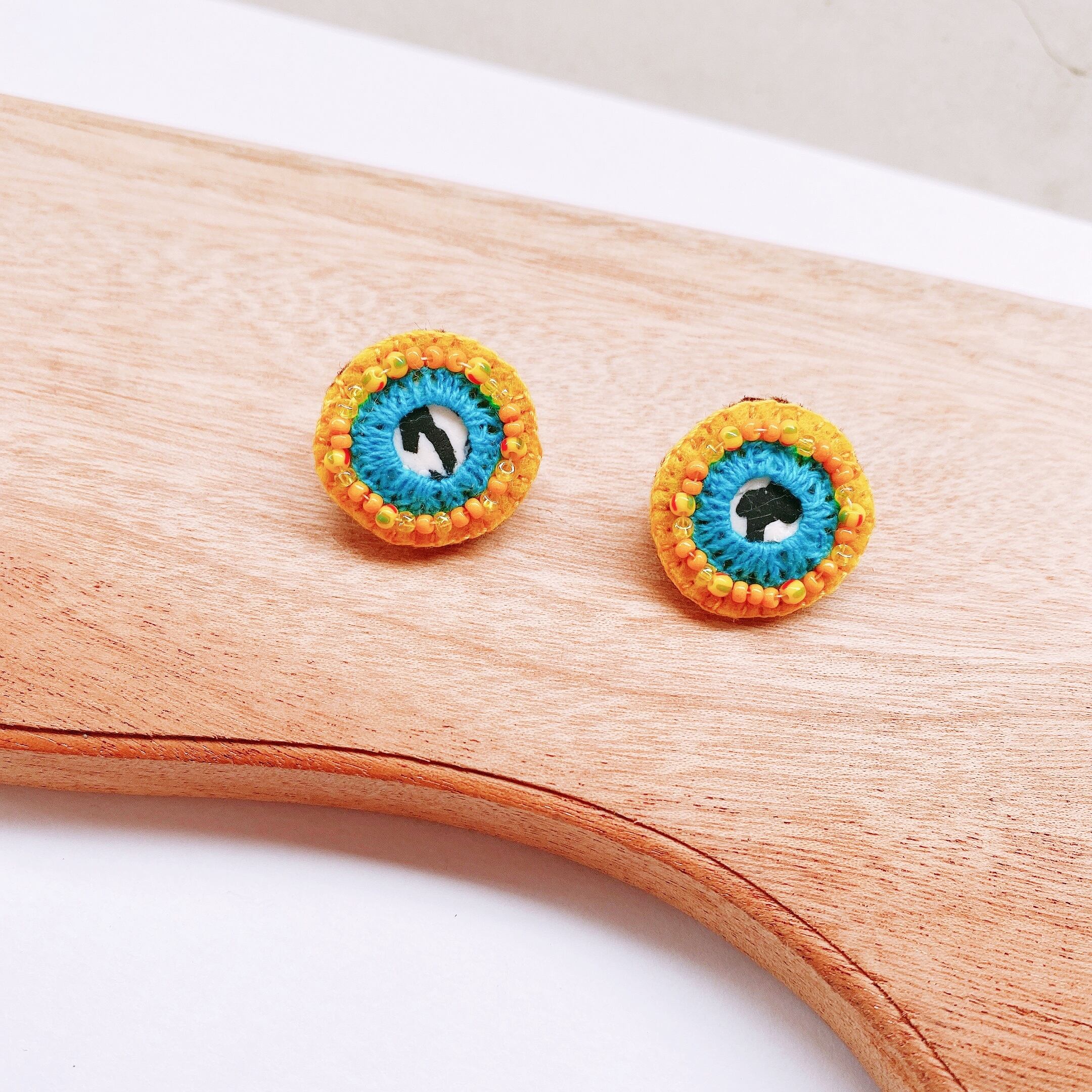 [材料] ターコイズ色刺繍糸・丸小ビーズ・樹脂チップ・2mm厚手フェルト・ピアス金具