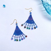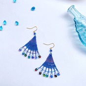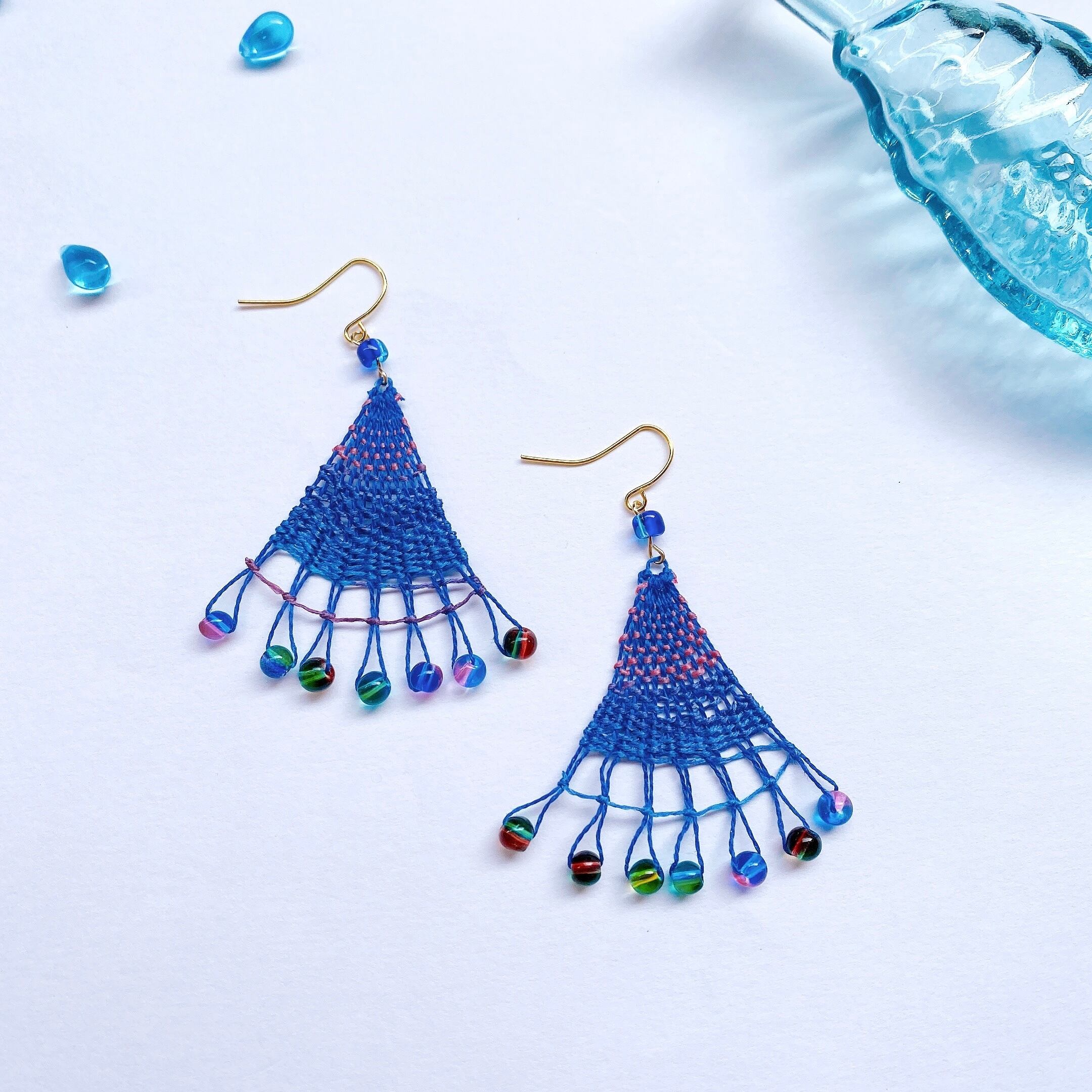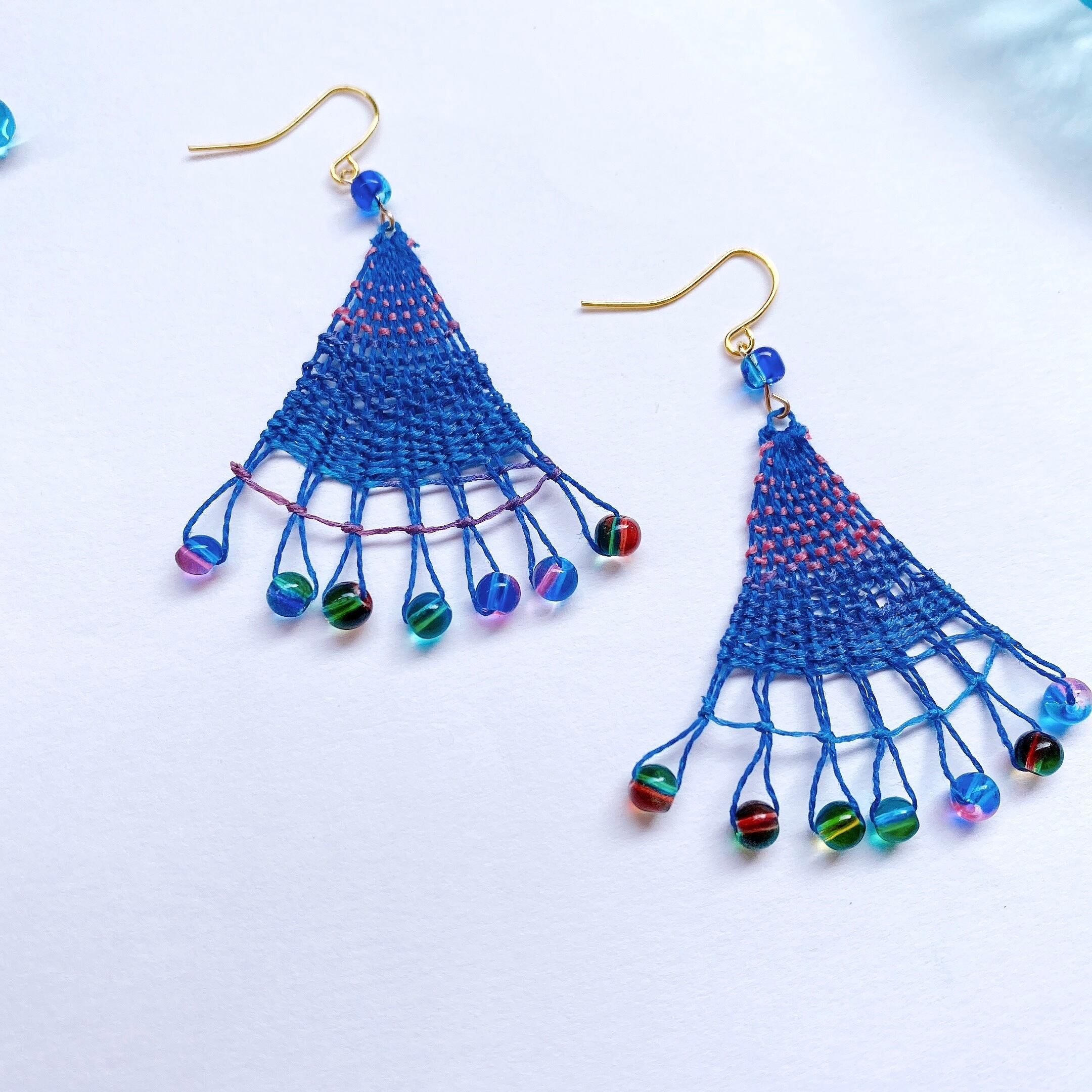 [材料]   青色・グラデーションシルク’糸・グラデーションガラスビーズ・ストライプガラスビーズ・ピアス金具
