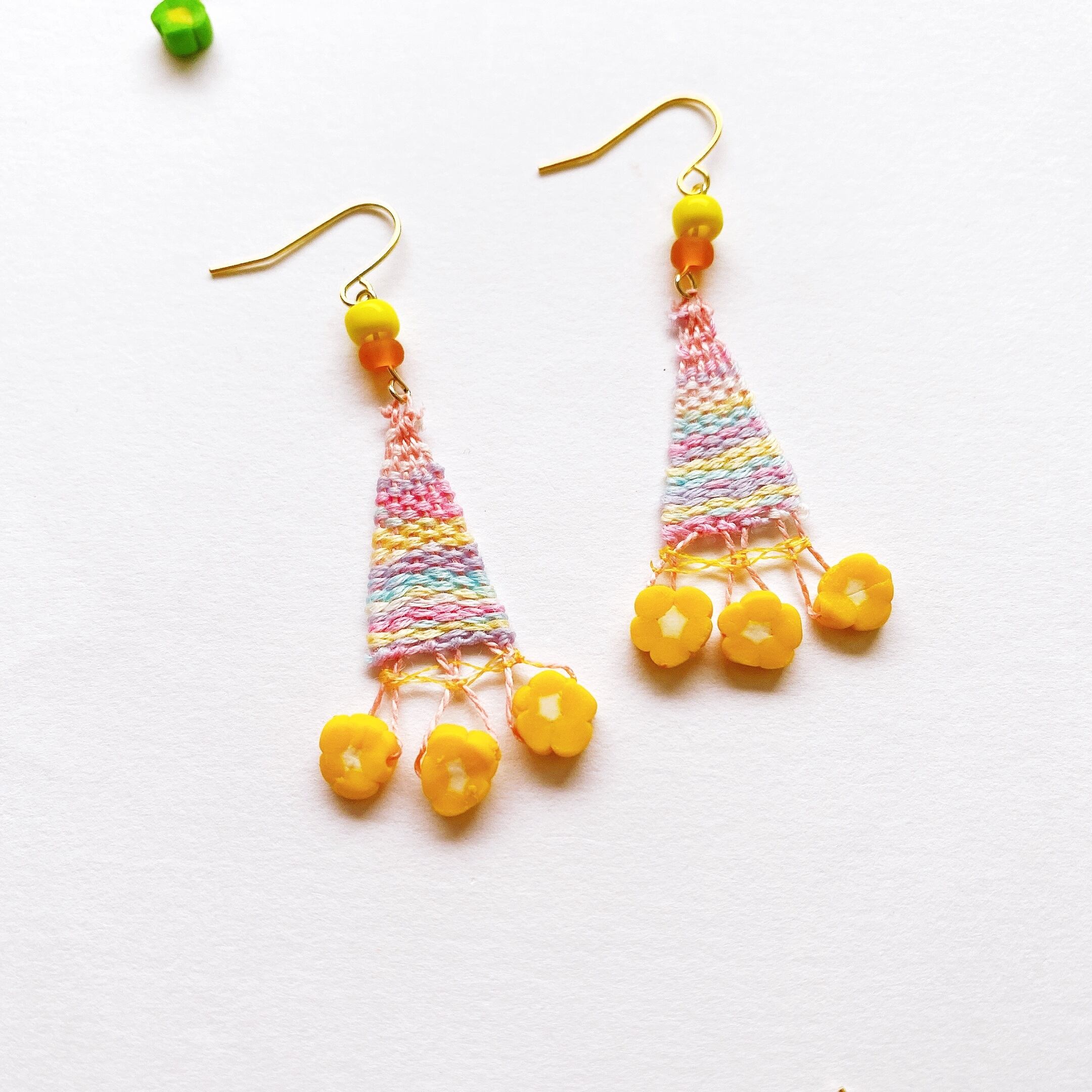 [材料]   薄いピンク色・グラデーション糸・オリジナル樹脂ビーズ・小さなガラスビーズ・ピアス金具