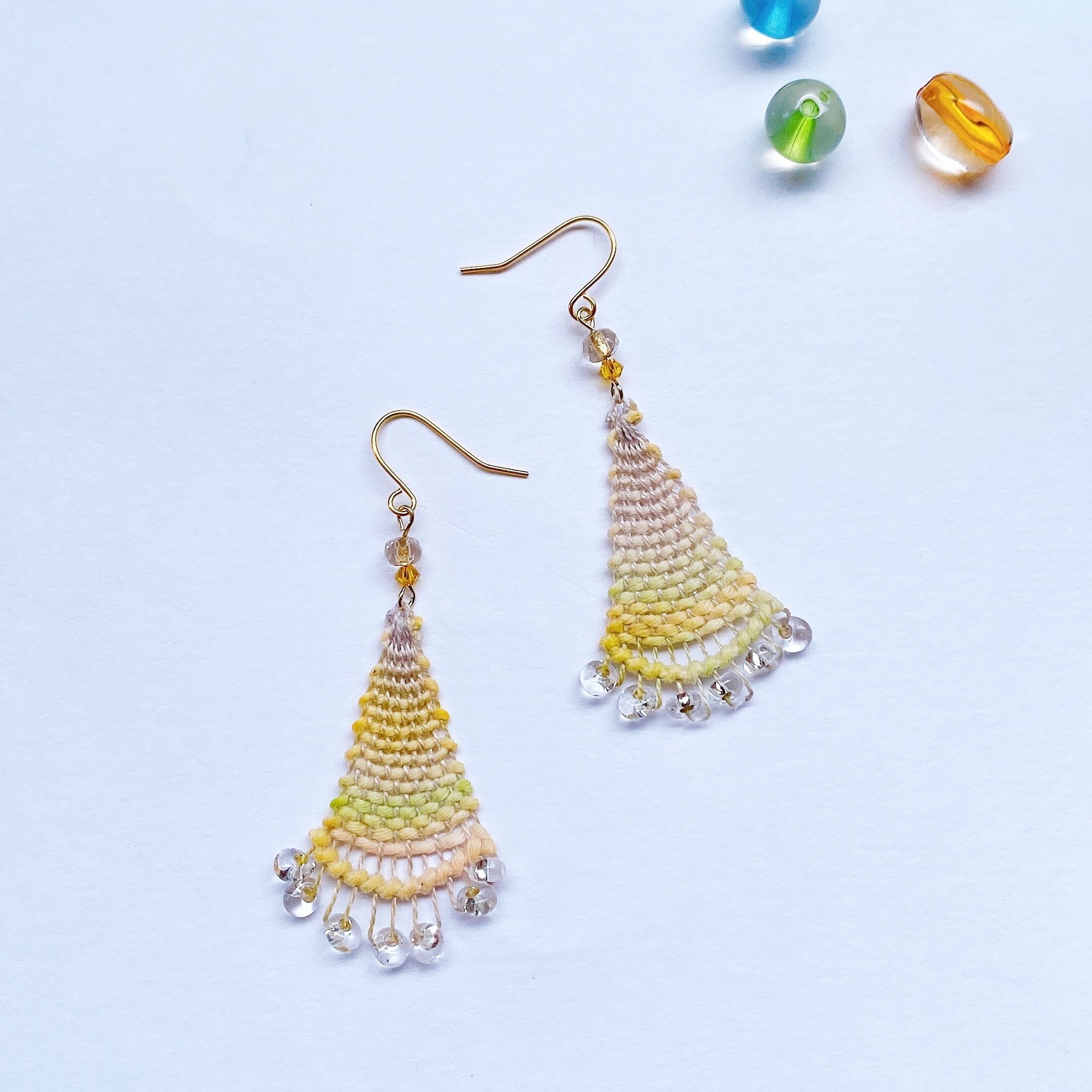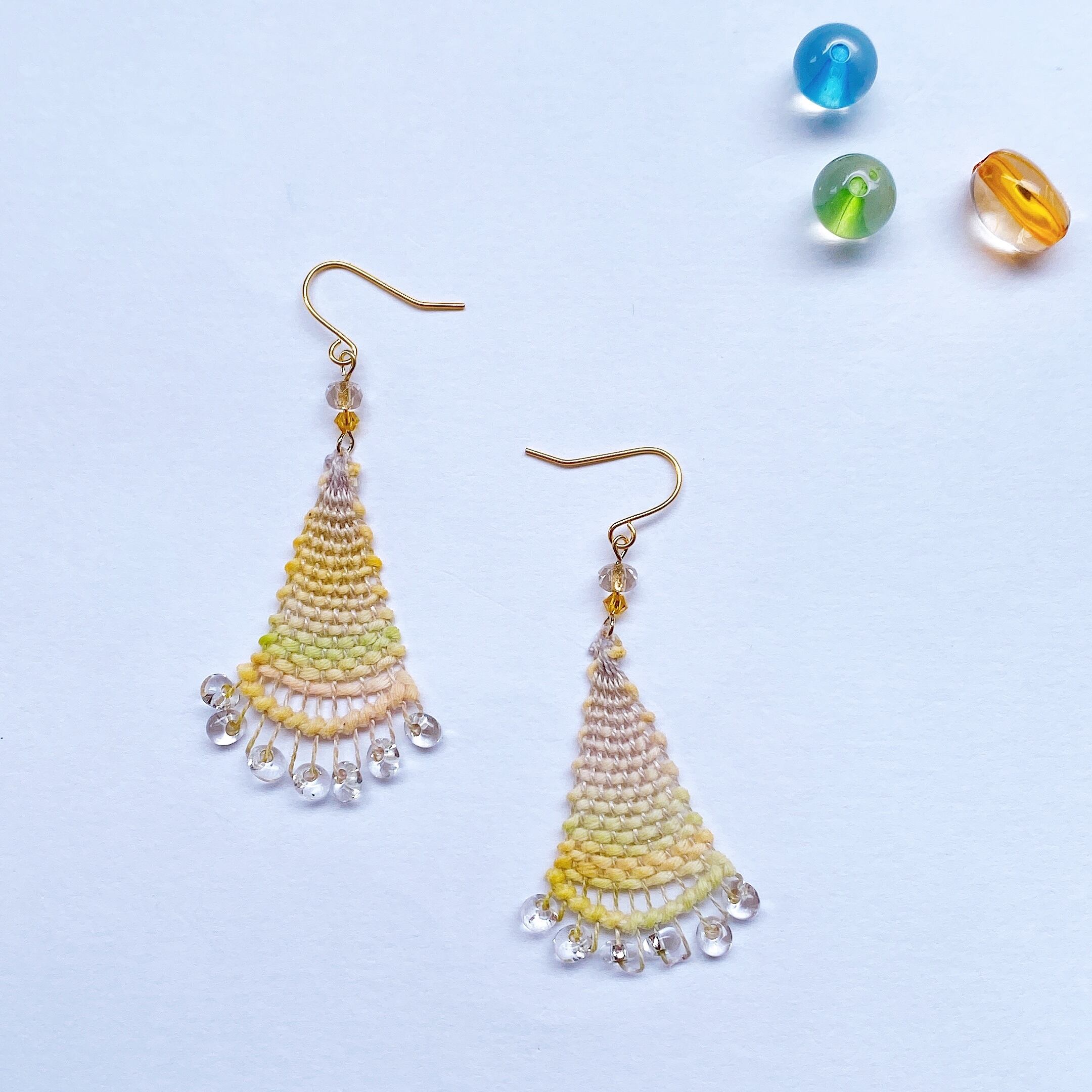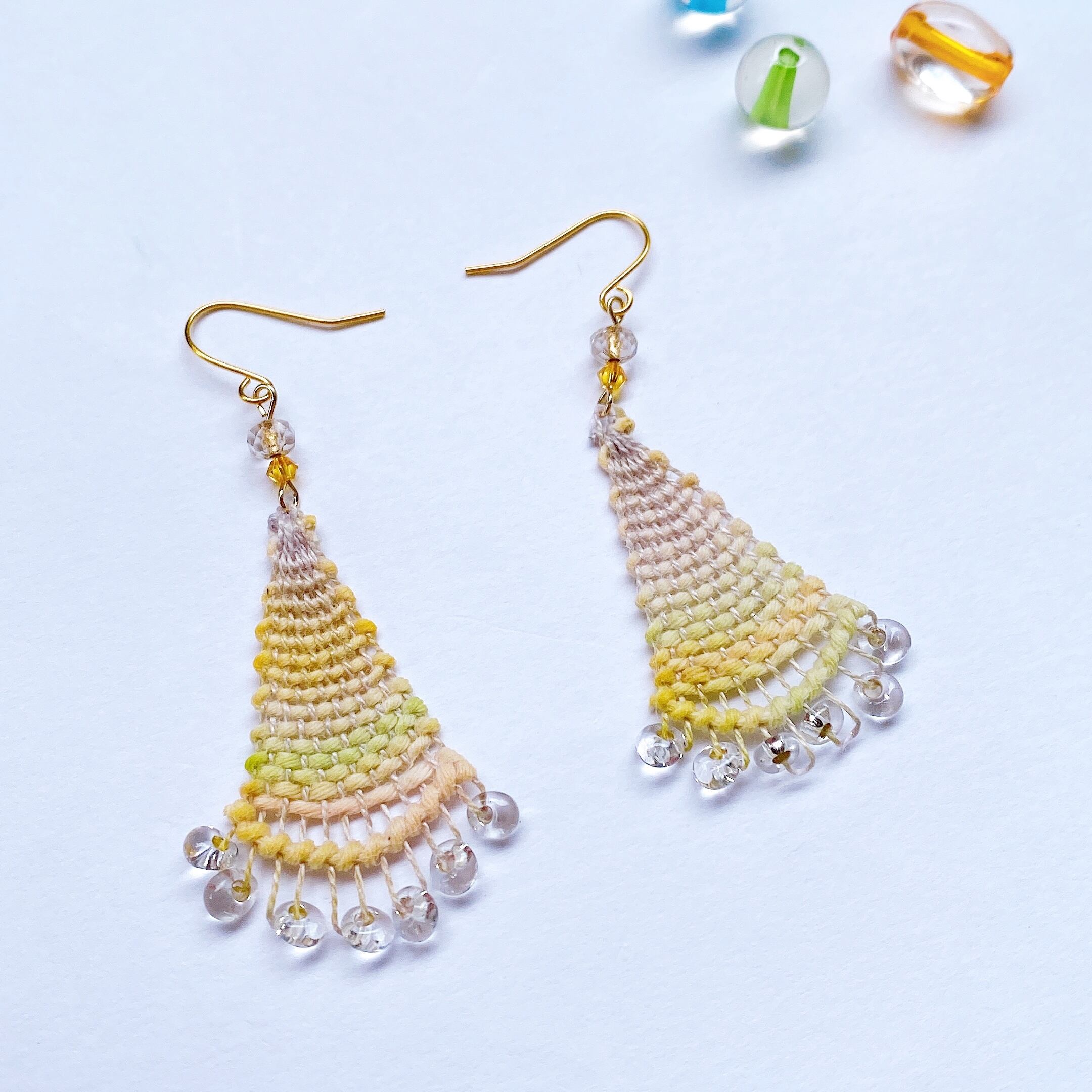 [材料]   手染め糸・さざれ石ビーズ・しずく型ガラスビーズ・小さなガラスビーズ・ピアス金具