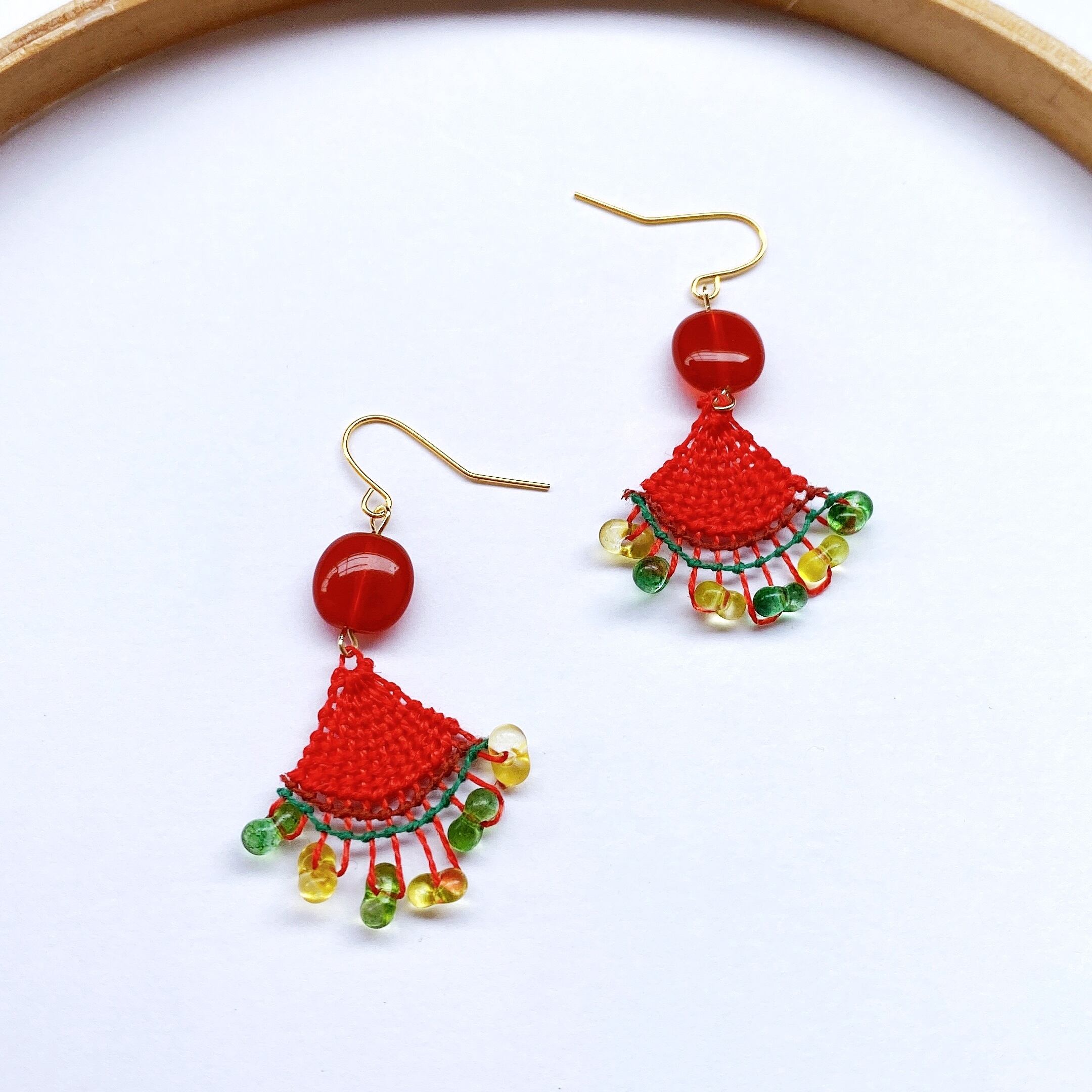 つるん!と赤色ニャンドゥティのピアス