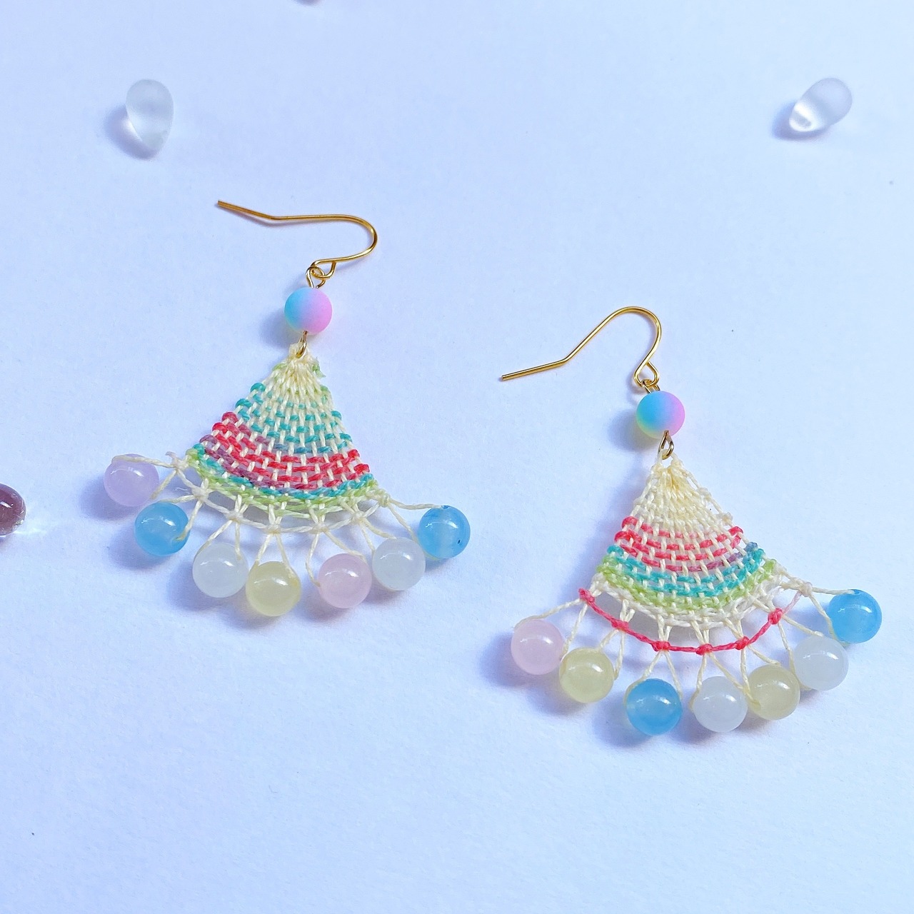 [材料] 白色・ギラデーション色糸・天然石ビーズ・アクリルビーズ・ピアス金具