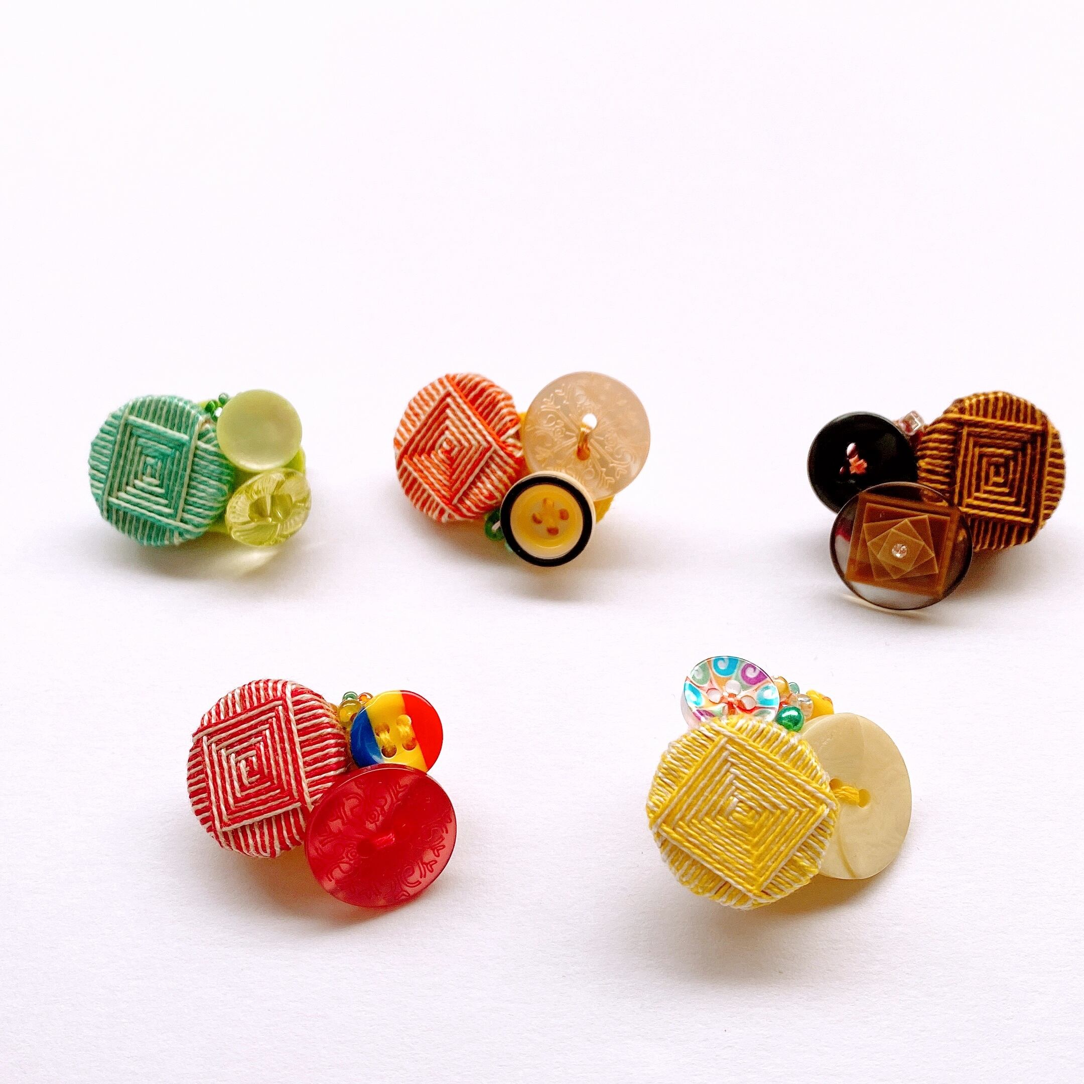 [材料]   アンティークアクリルボタン・オリジナル糸巻きボタン・フェルト・ビーズ・ブローチピン