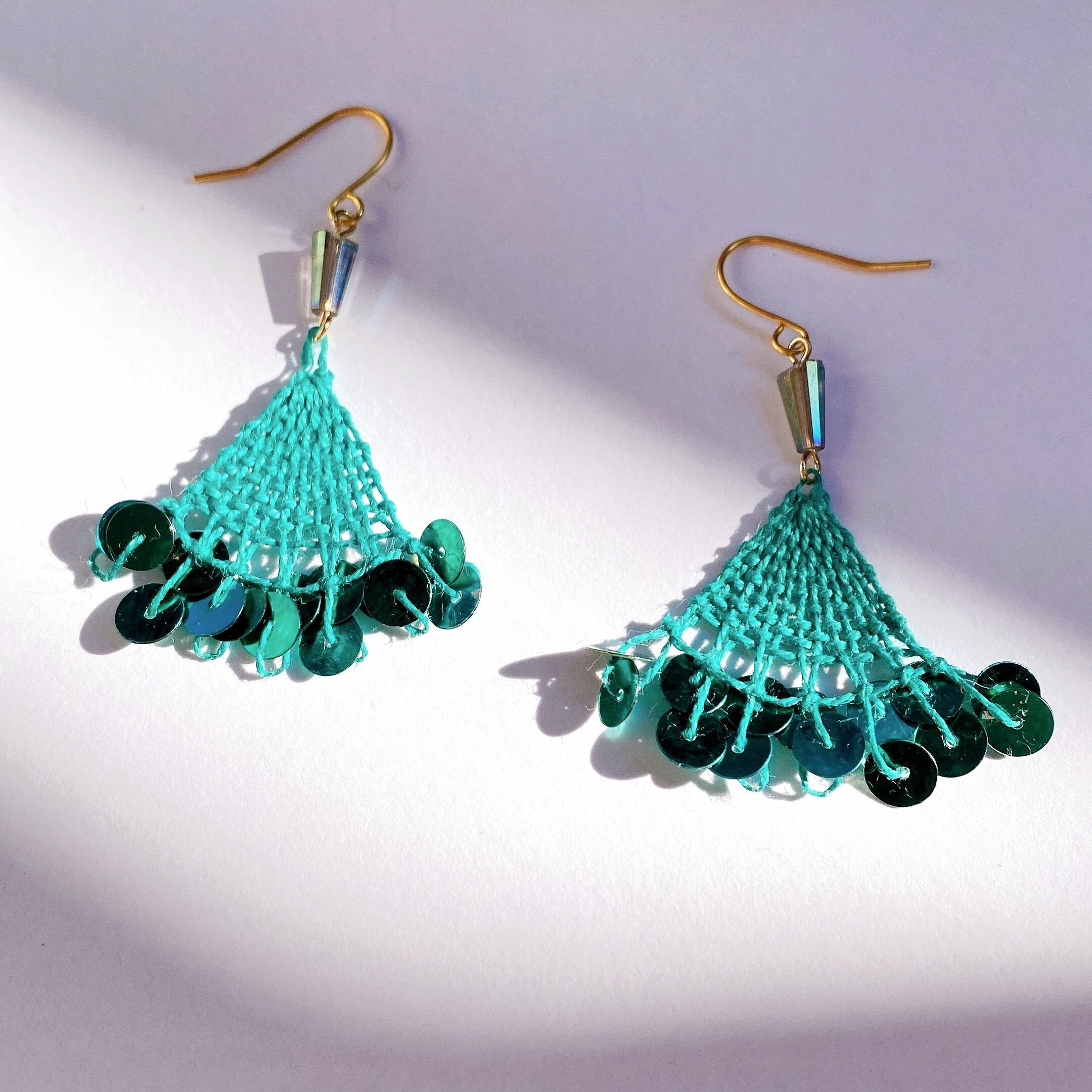 少し青みのかかったグリーンをベースにキラキラひかるスパンコールをたくさんつけました。