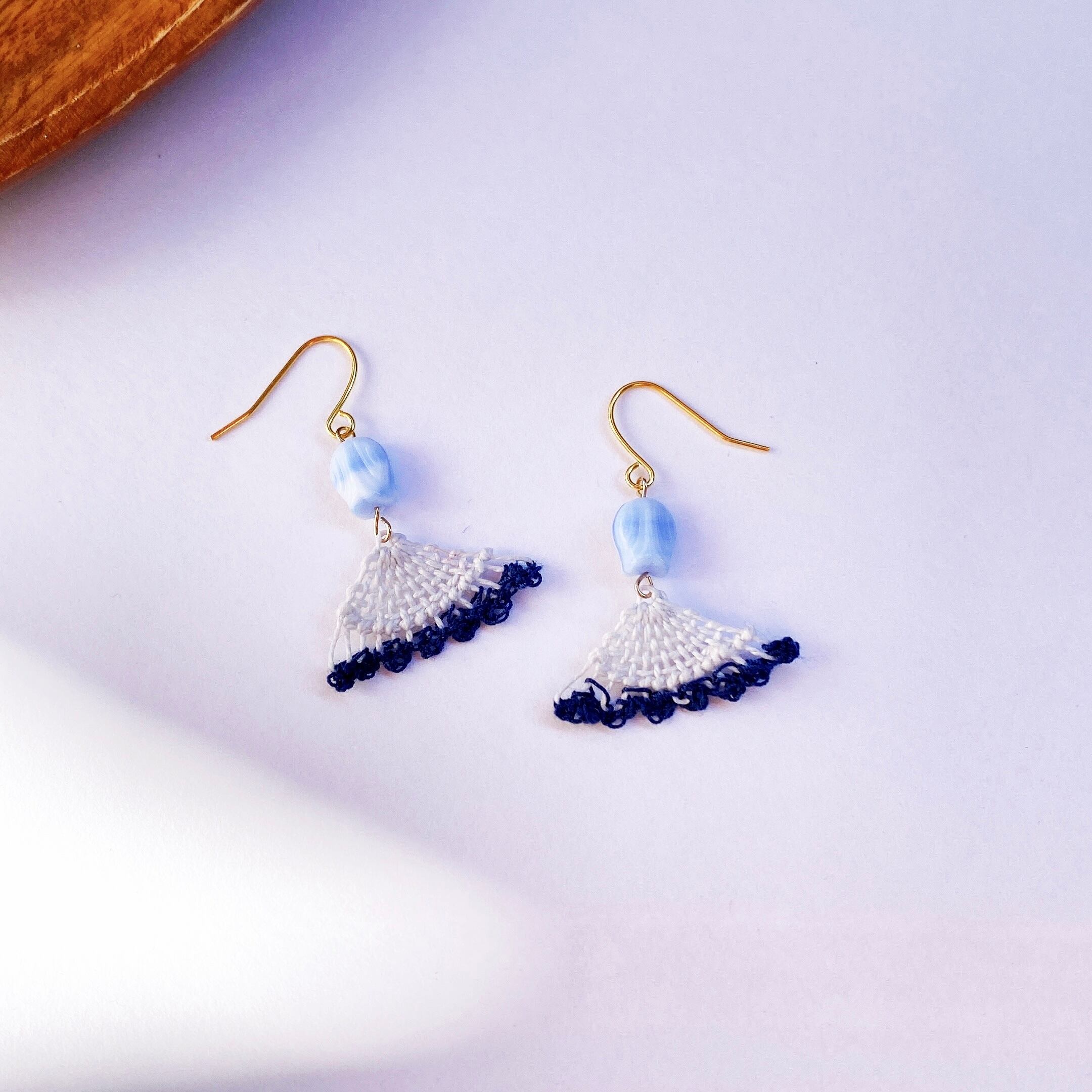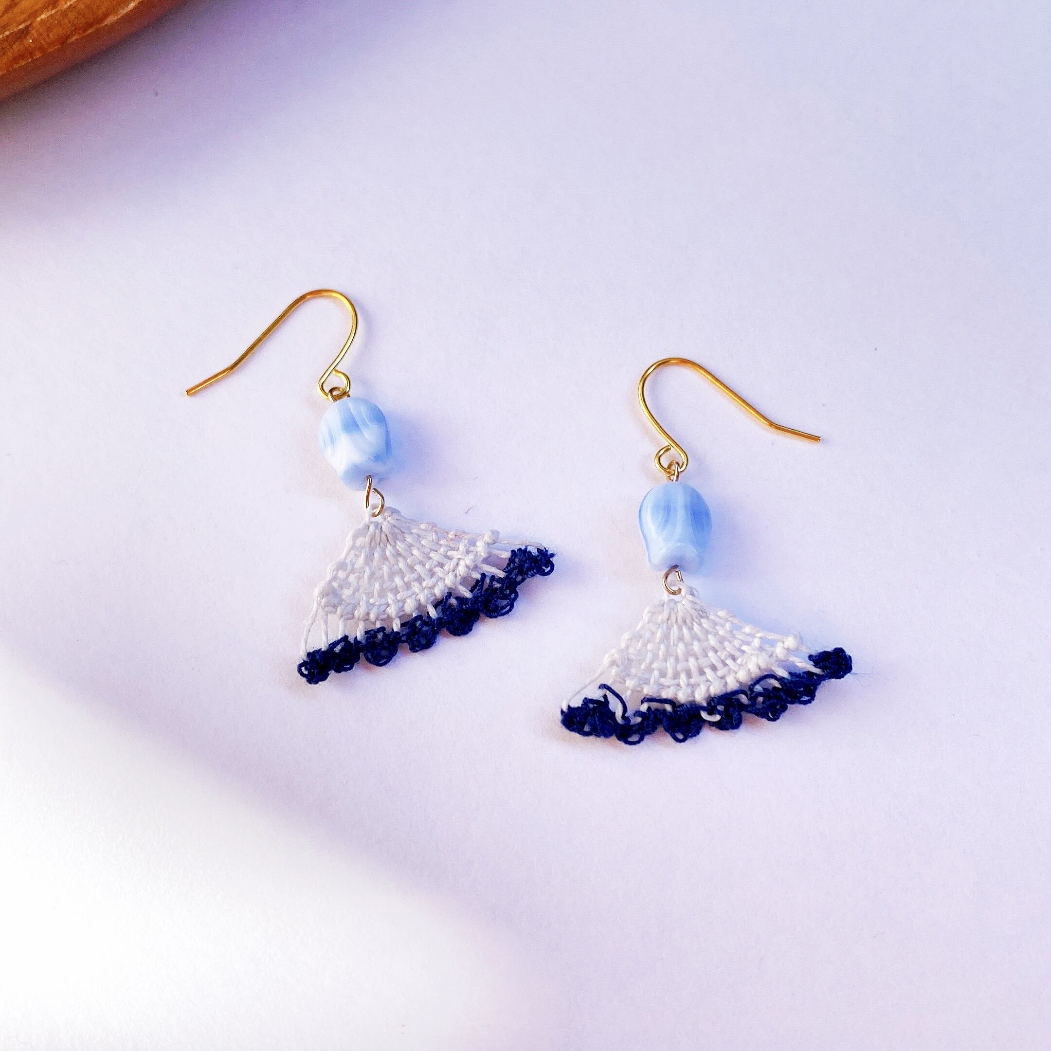 [材料]   ホワイト糸・チューリップガラスビーズ・レース糸・ピアス金具