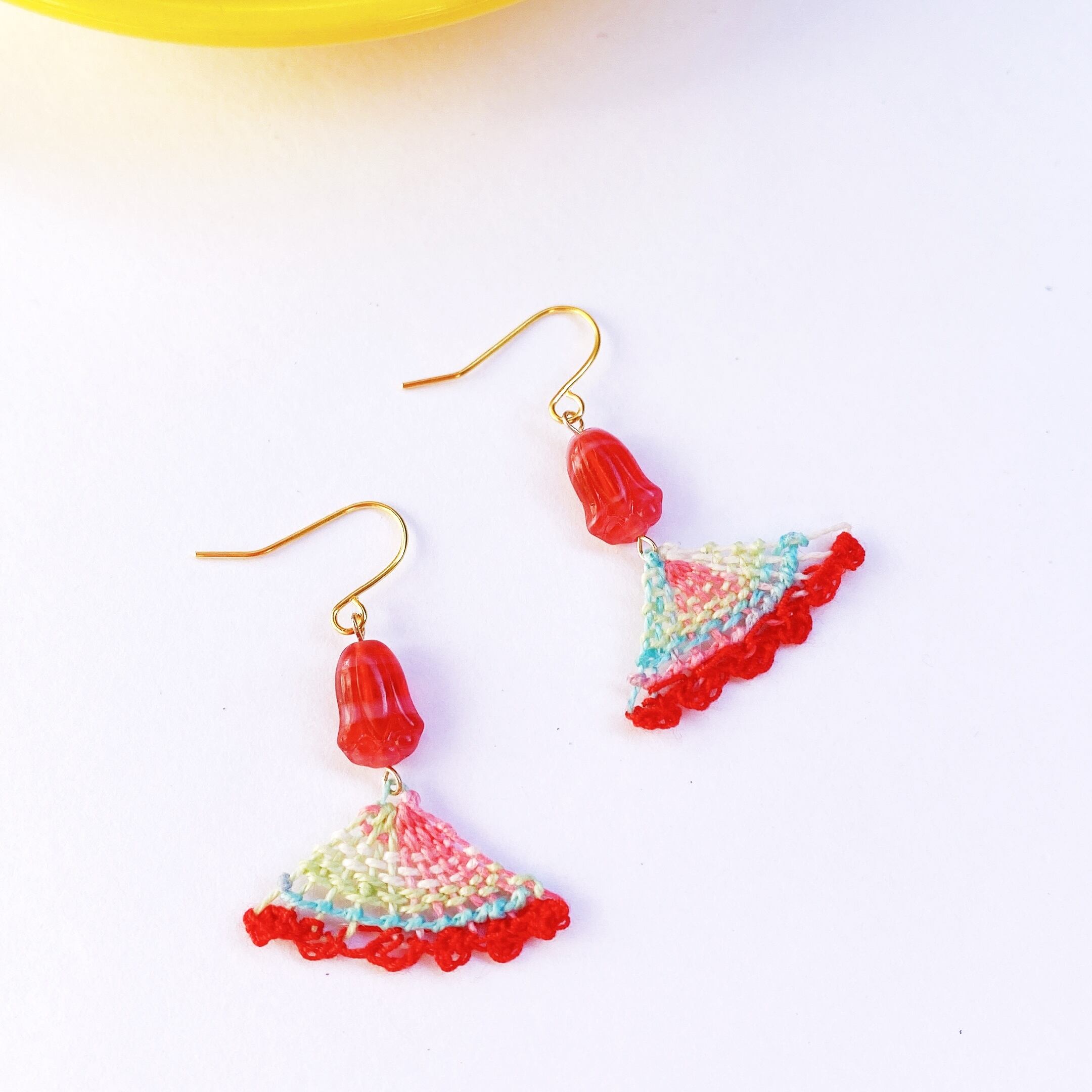 [材料]   グラデーション糸・チューリップガラスビーズ・レース糸・ピアス金具