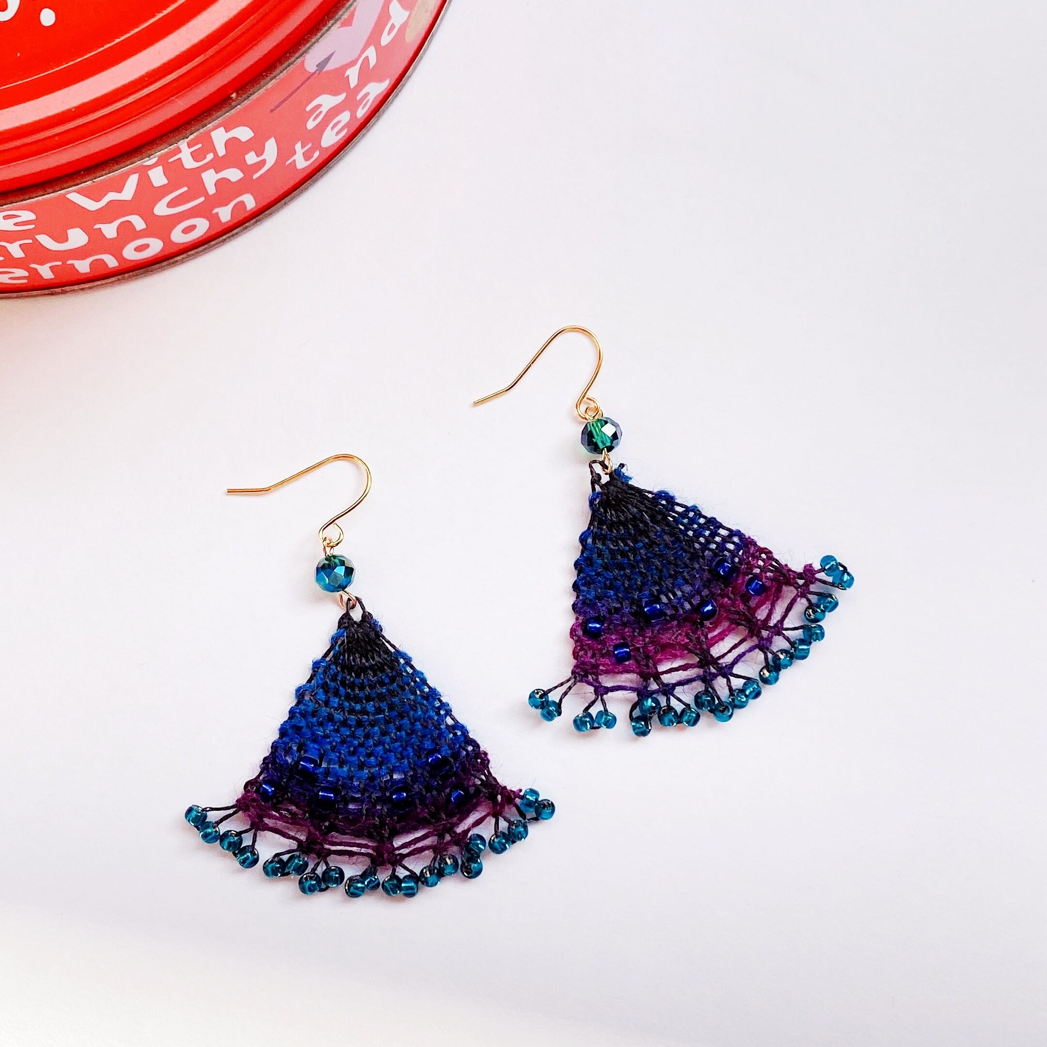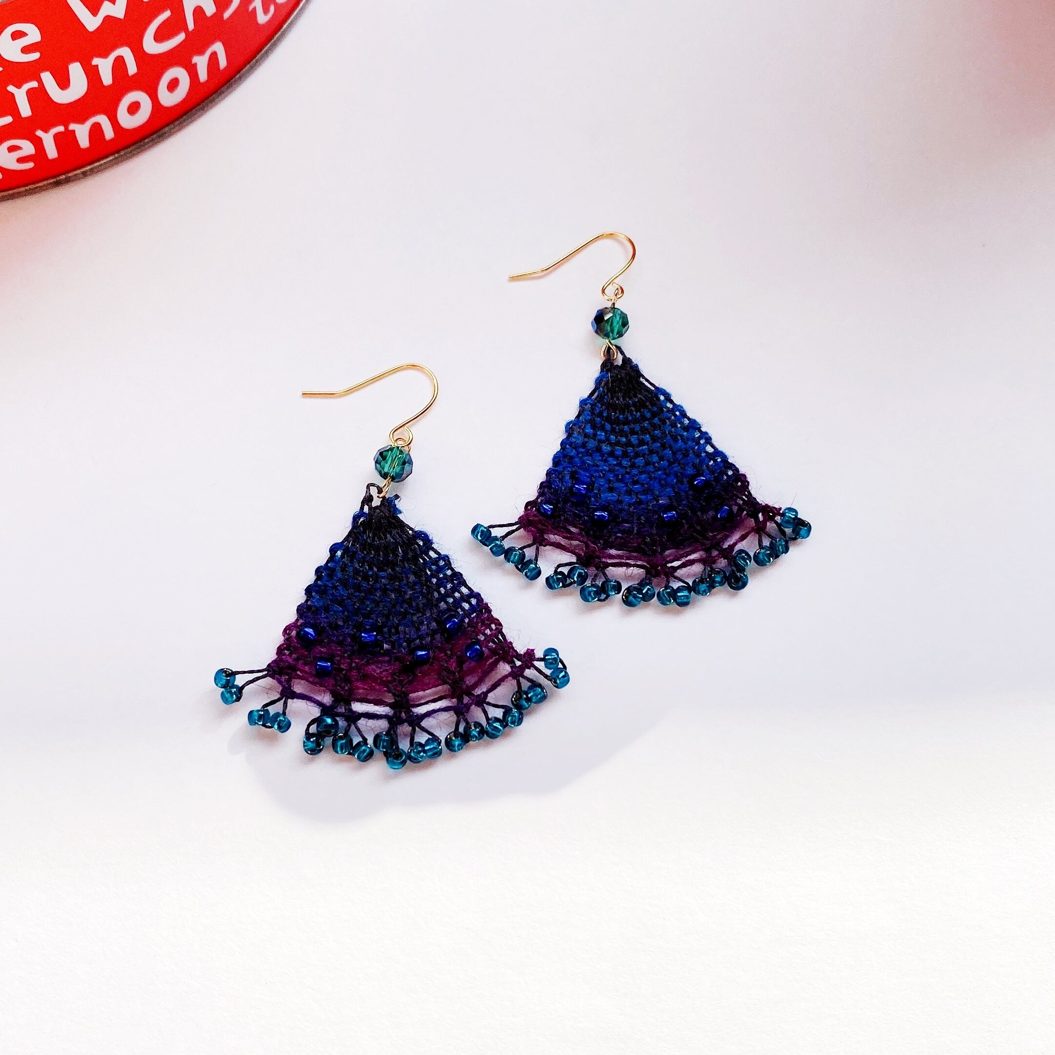 [材料]    紺色糸・ブルーガラスビーズ2種類・トルコガラスビーズ・ピアス金具