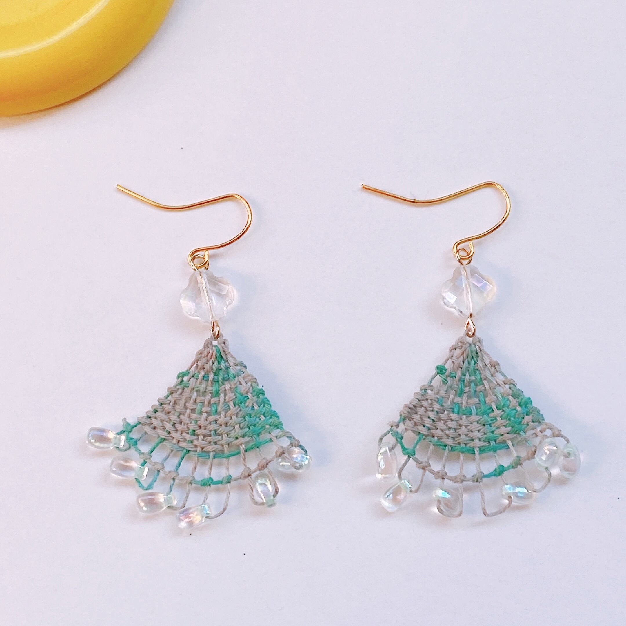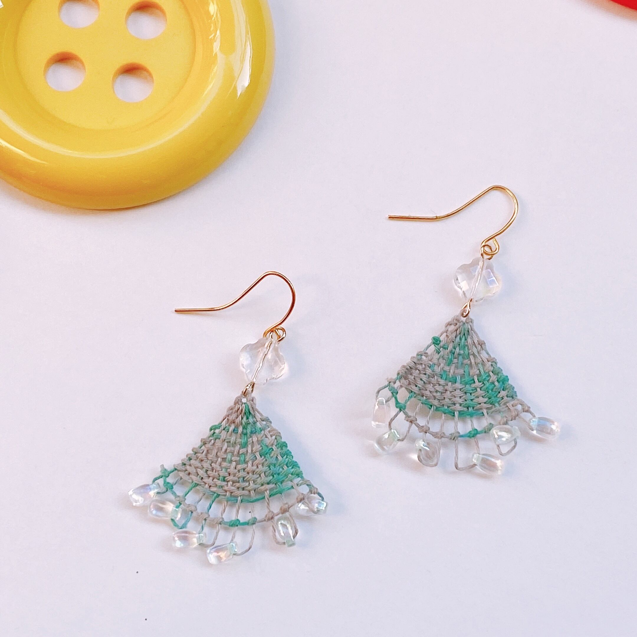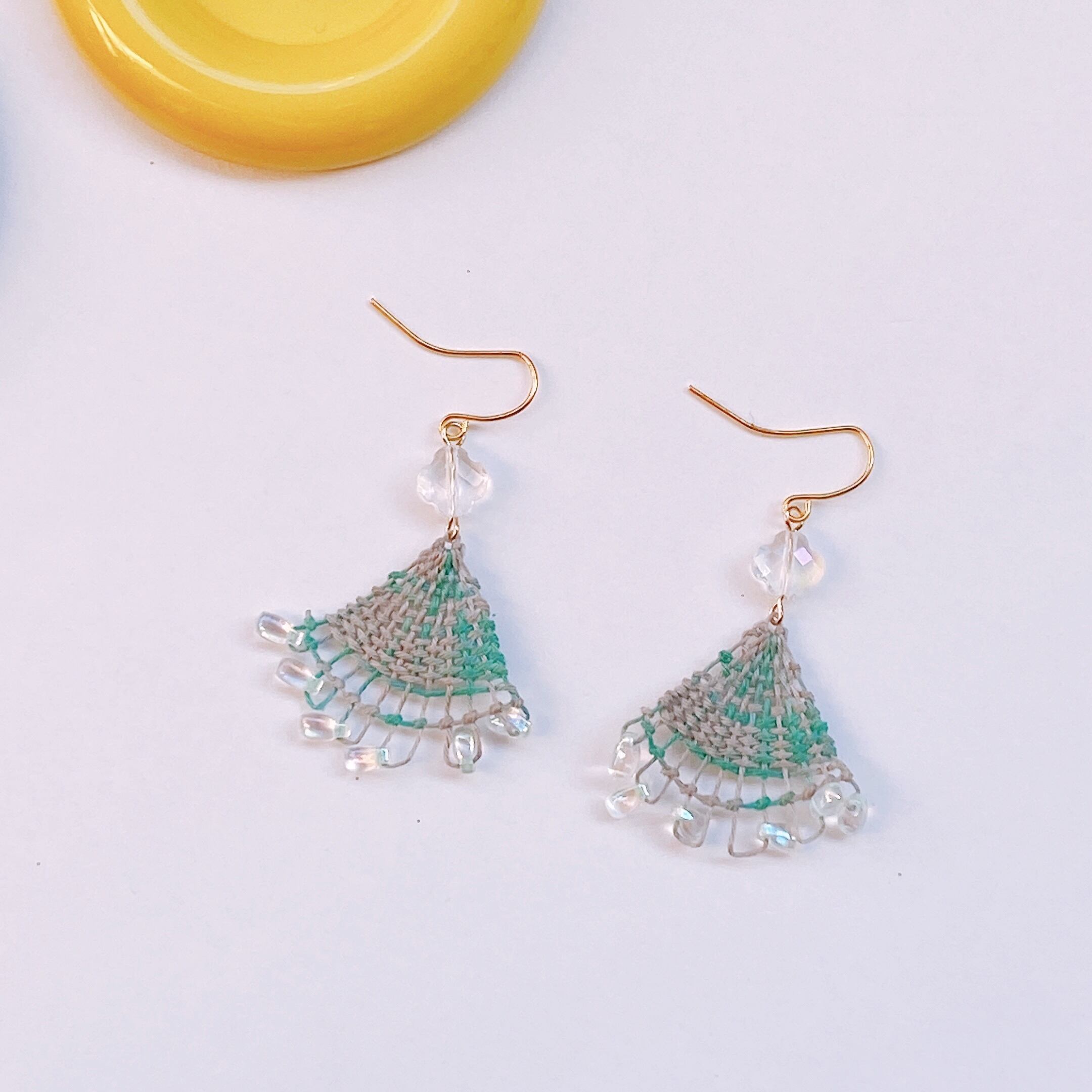 小さなガラスのかけらのようなビーズが揺れるデザインです。