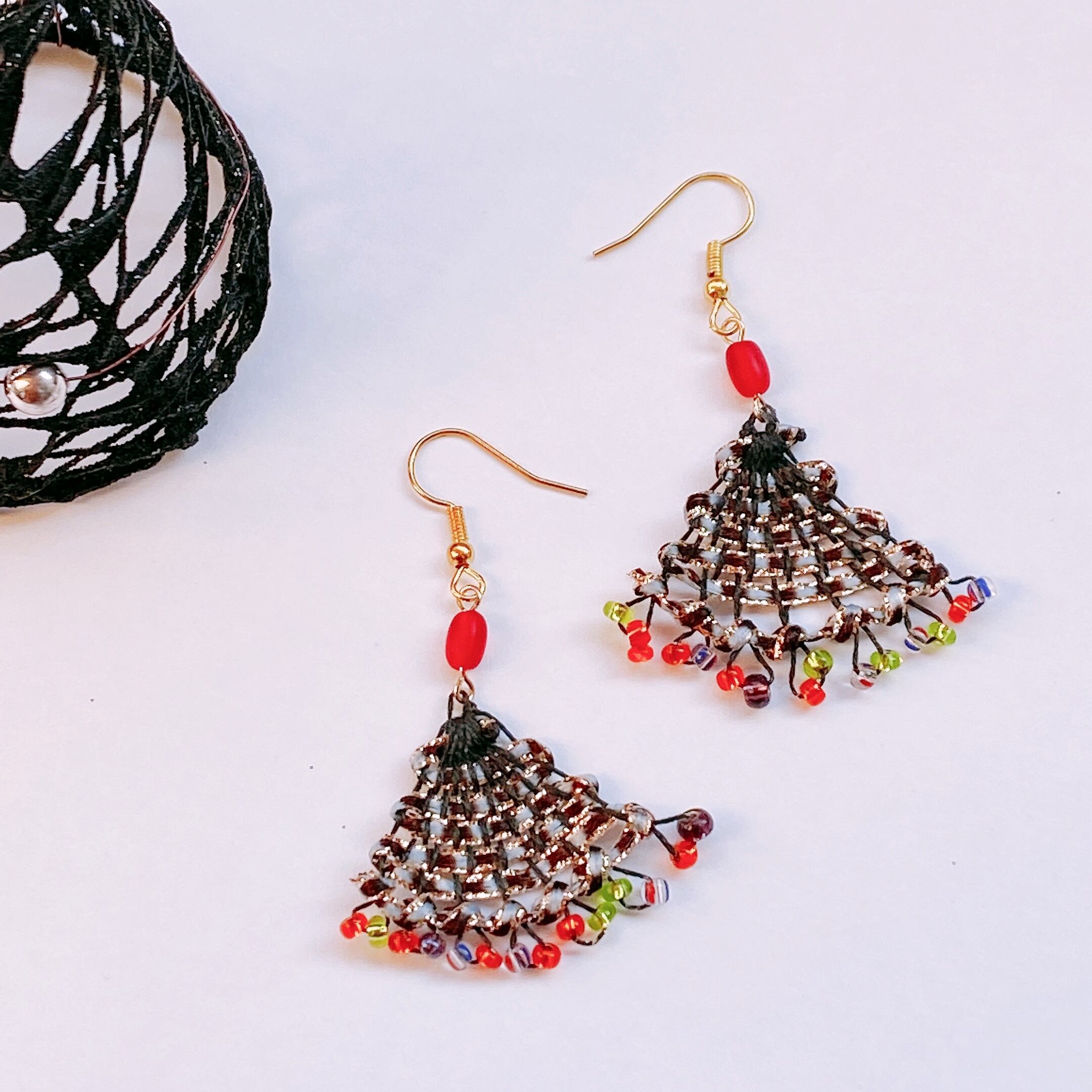 [材料]    ブラック・シルバー糸・極小ガラスビーズ・トルコガラスビーズ・ピアス金具