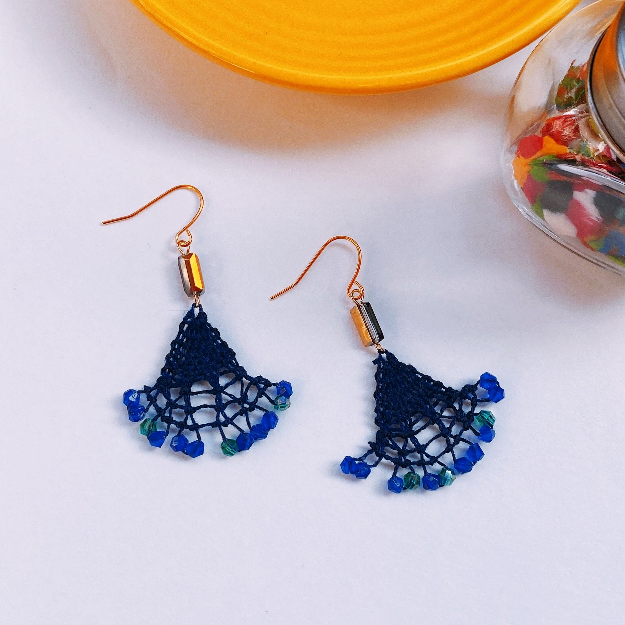[材料]     紺色(藍色)糸・ダイヤカットビース・トルコビース・ピアス金具