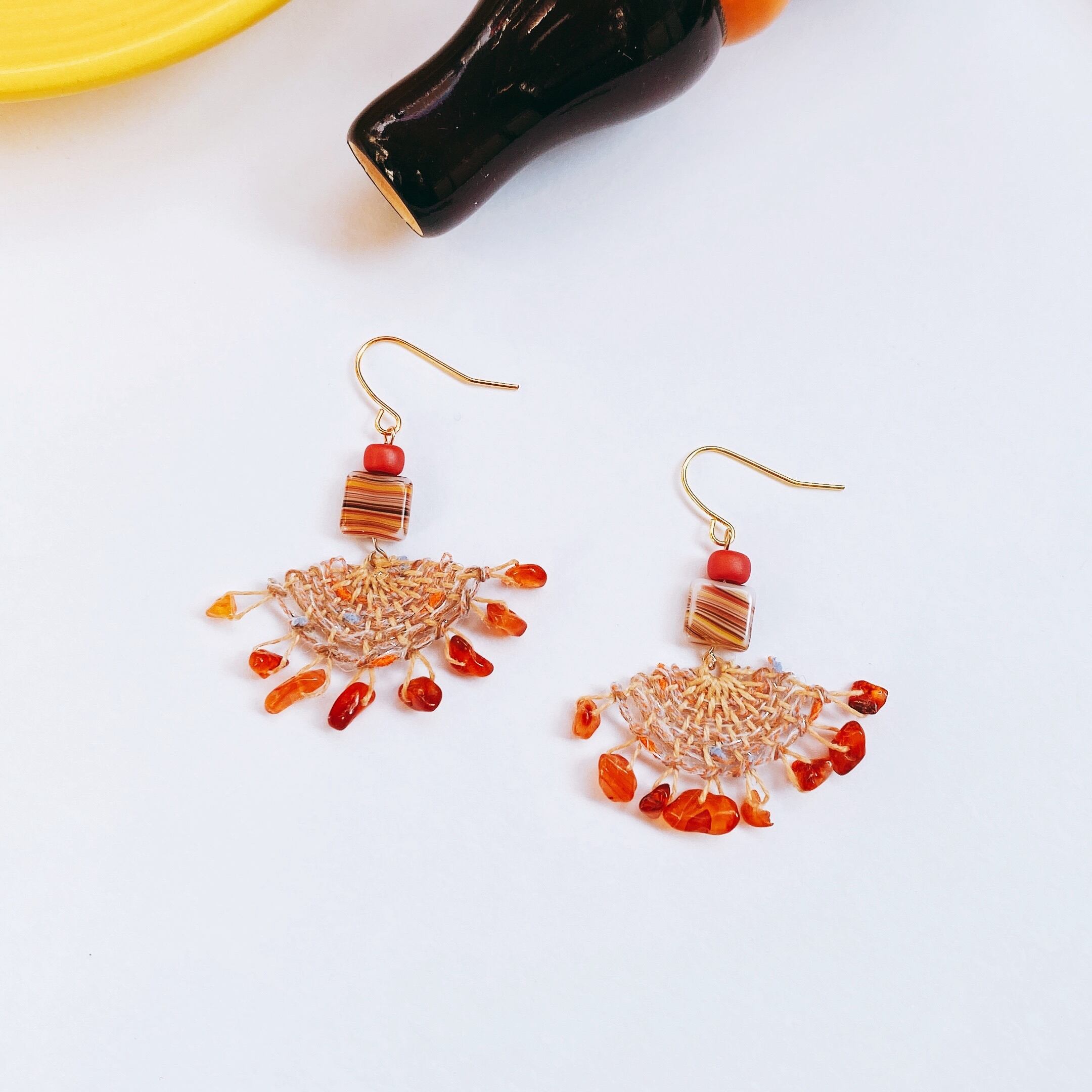 [材料]     生成り糸・毛糸・天然石さざれビース・オリジナルガラスビース・ピアス金具