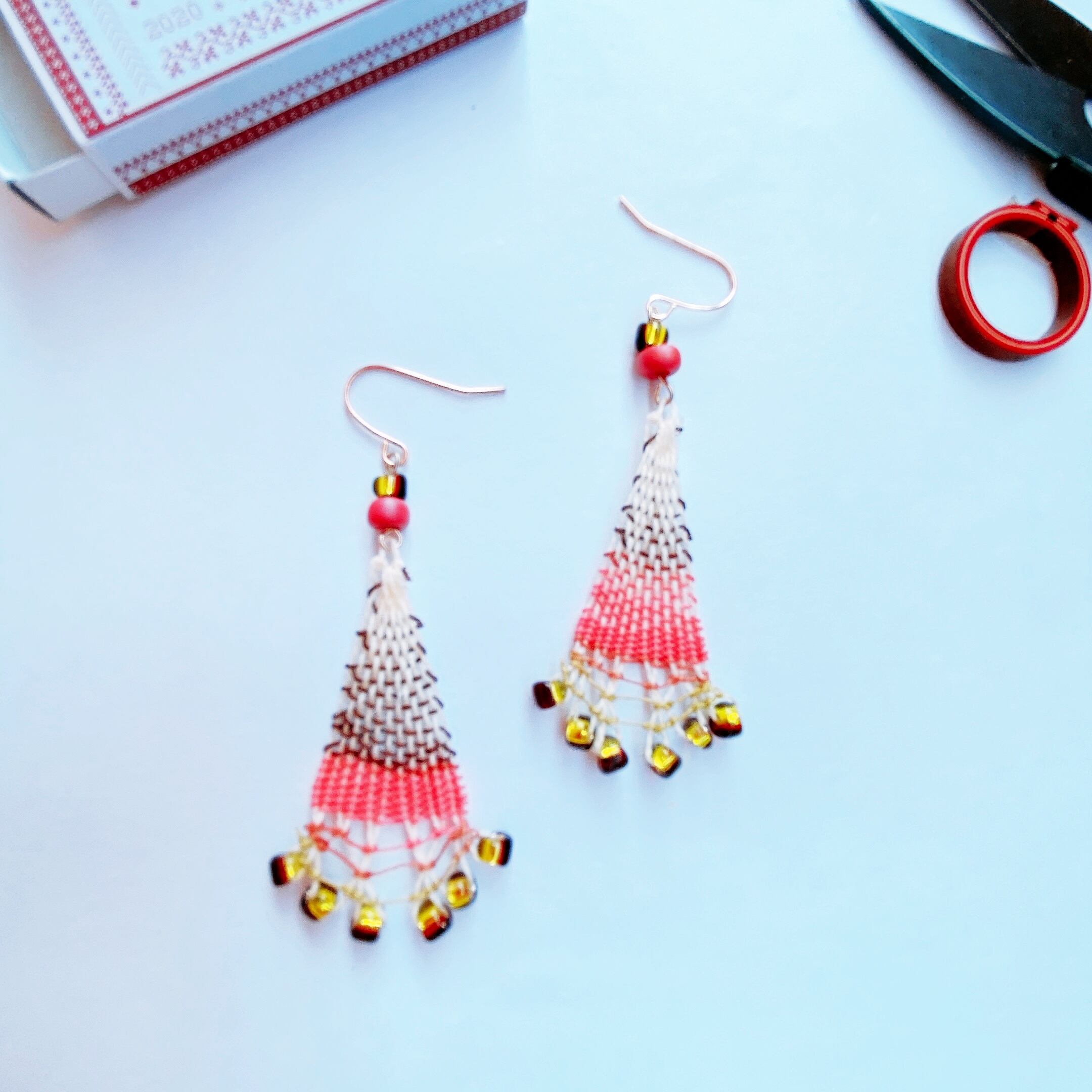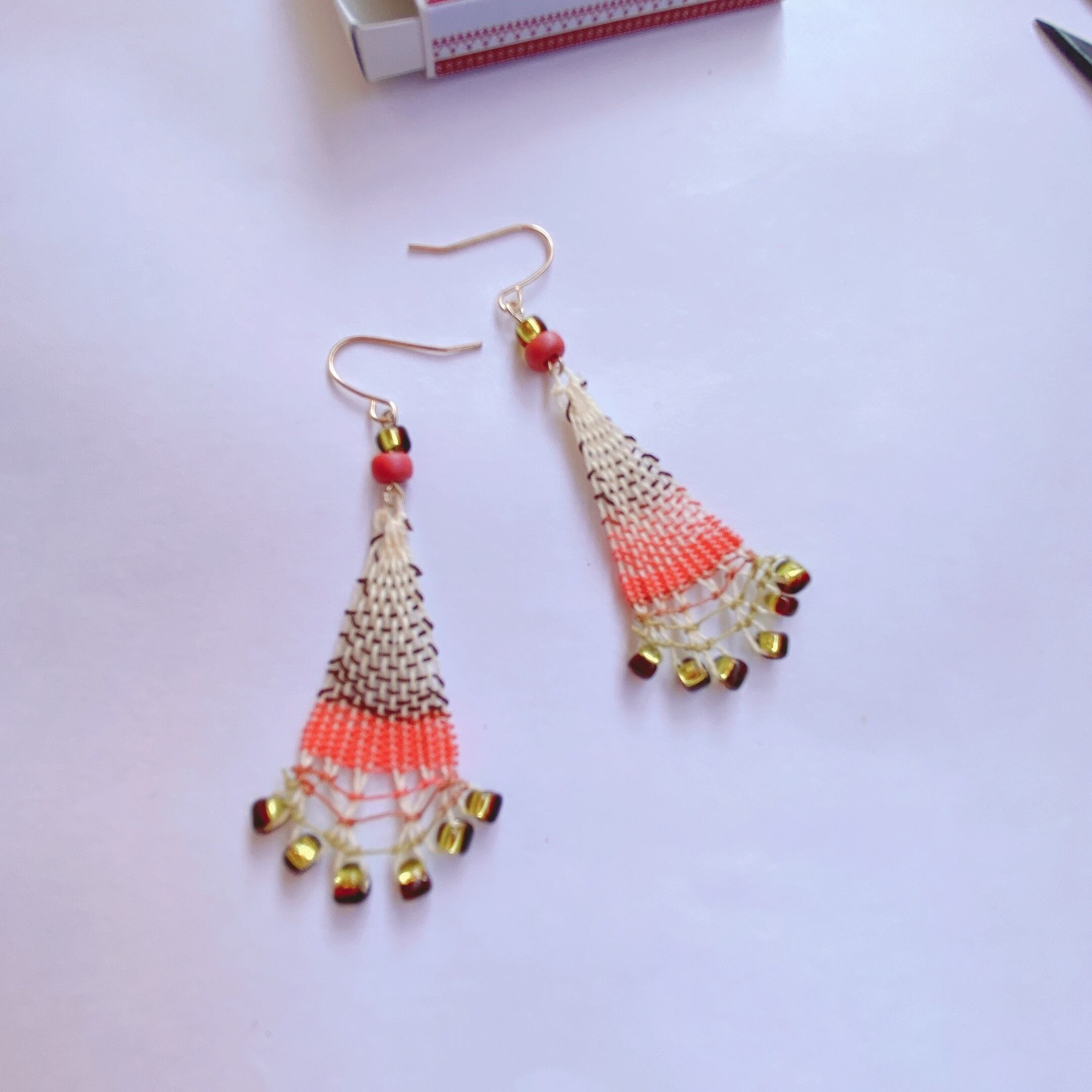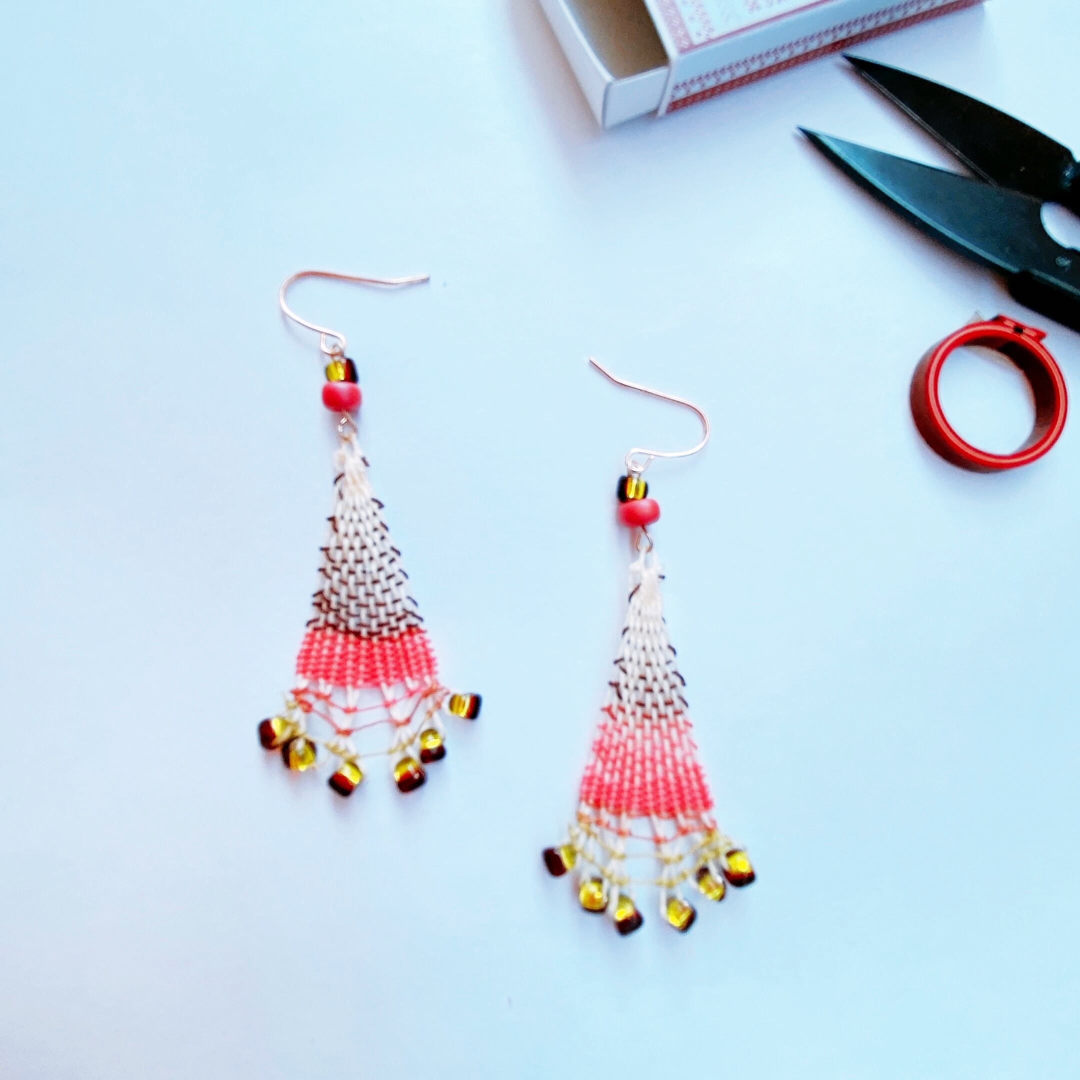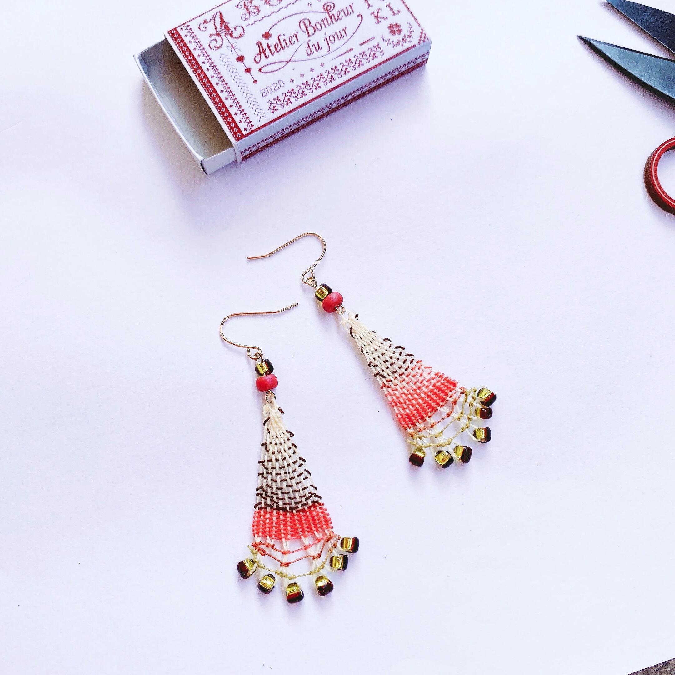 とても細い糸なので何層にもなった色の楽しさや、少し涼しげなイメージで耳元で揺れてくれます。