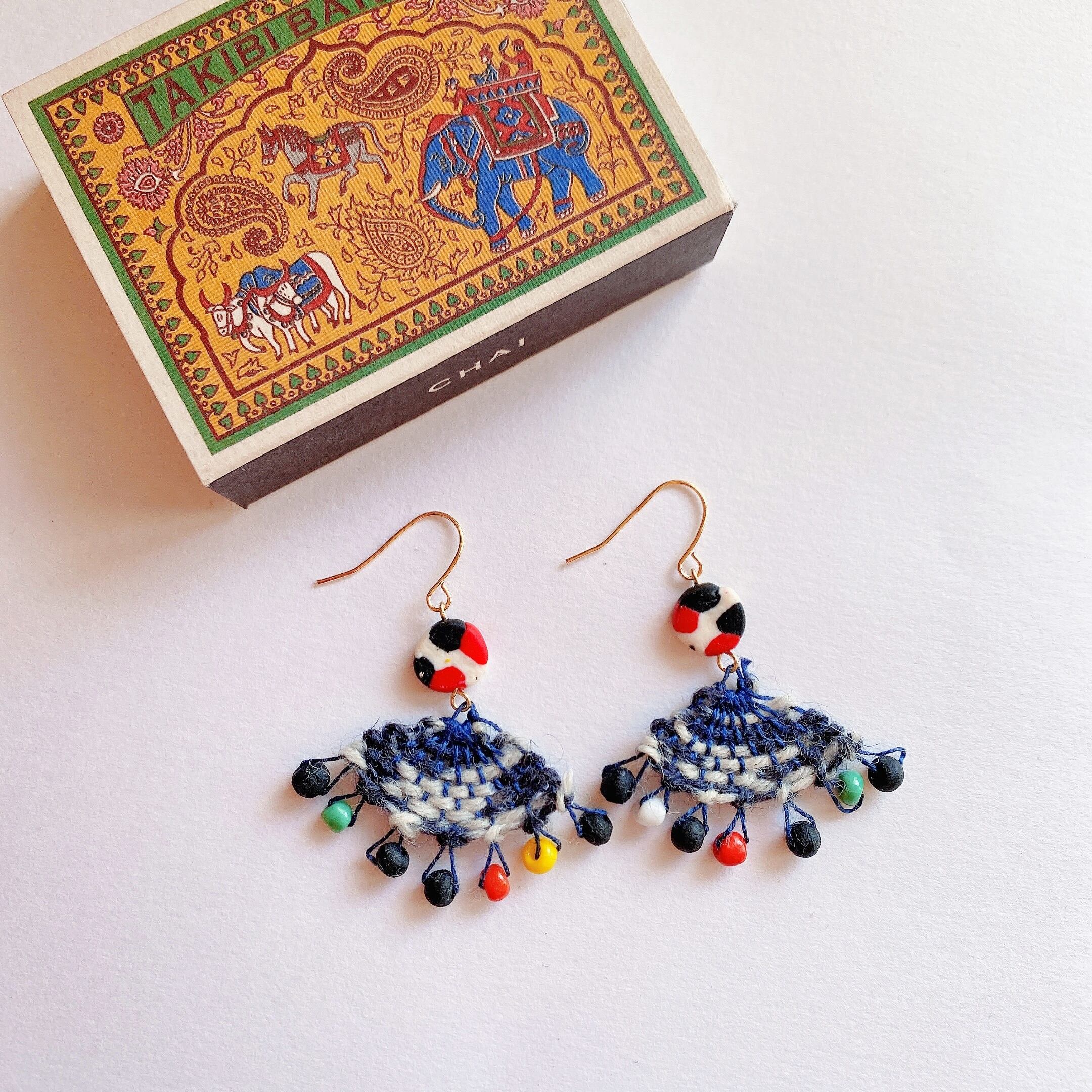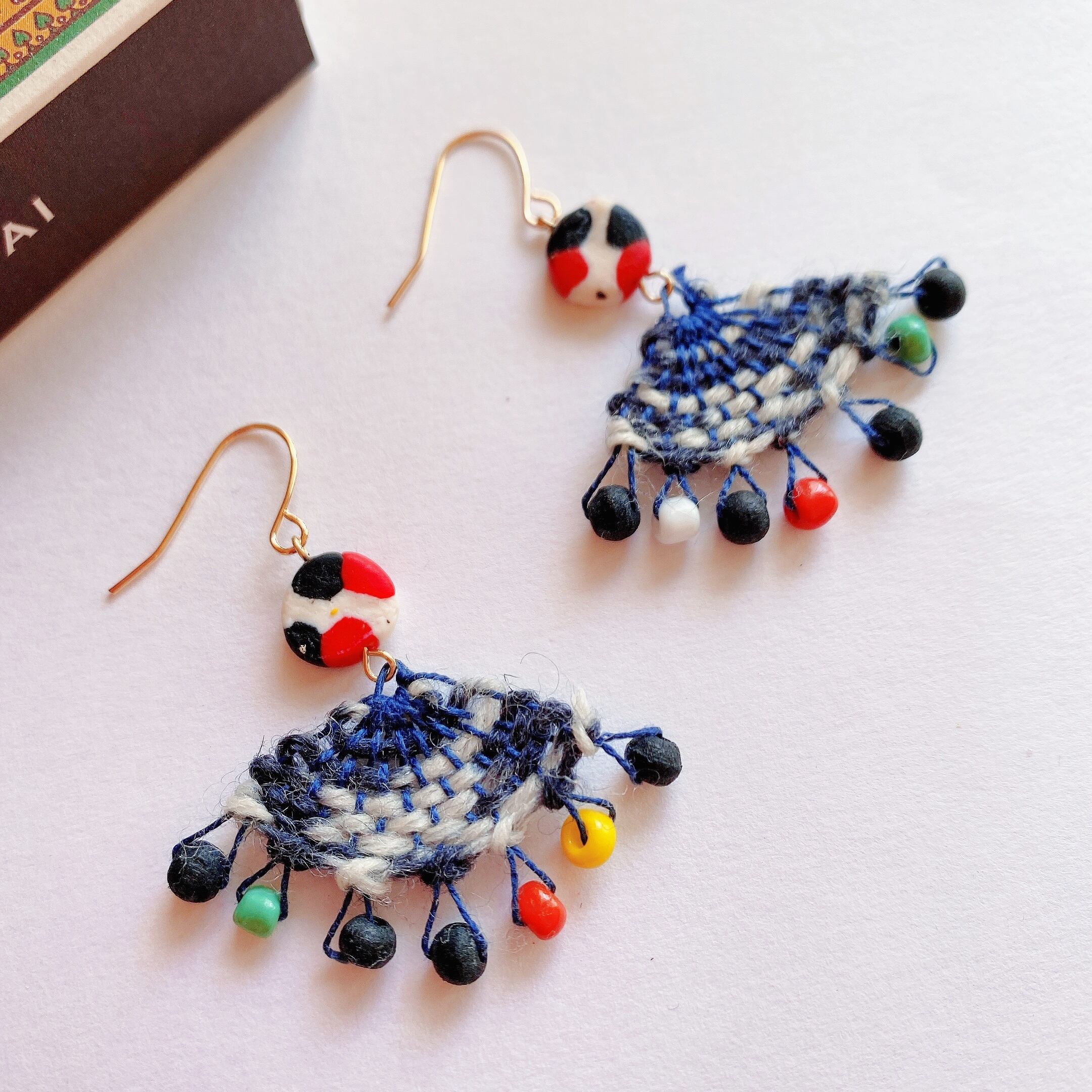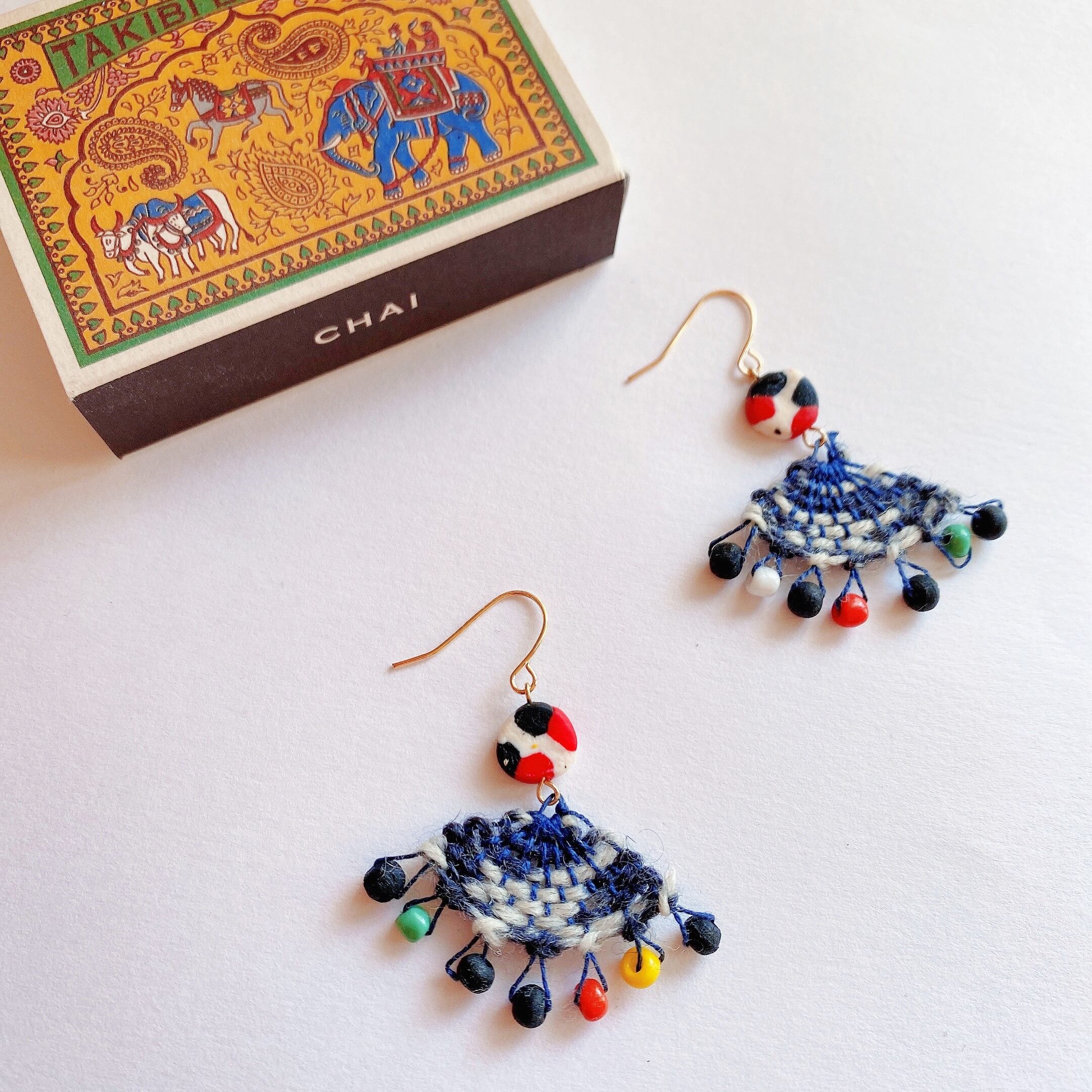 [材料]     綿糸・毛糸・インド木製ビーズ・オリジナル樹脂ビーズ・イヤリング金具