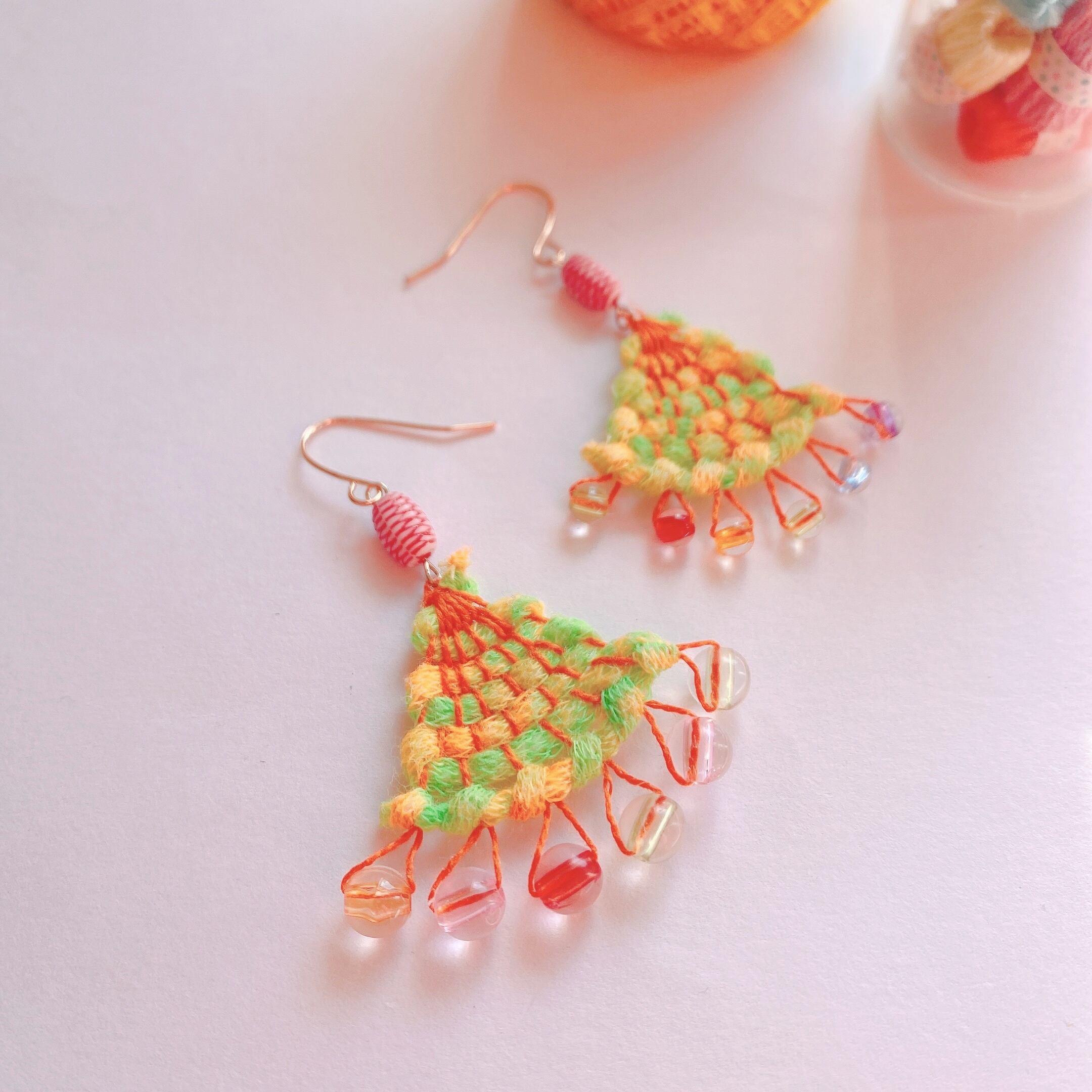 [材料]     イタリア製綿糸・アクリルビーズ・ピアス金具