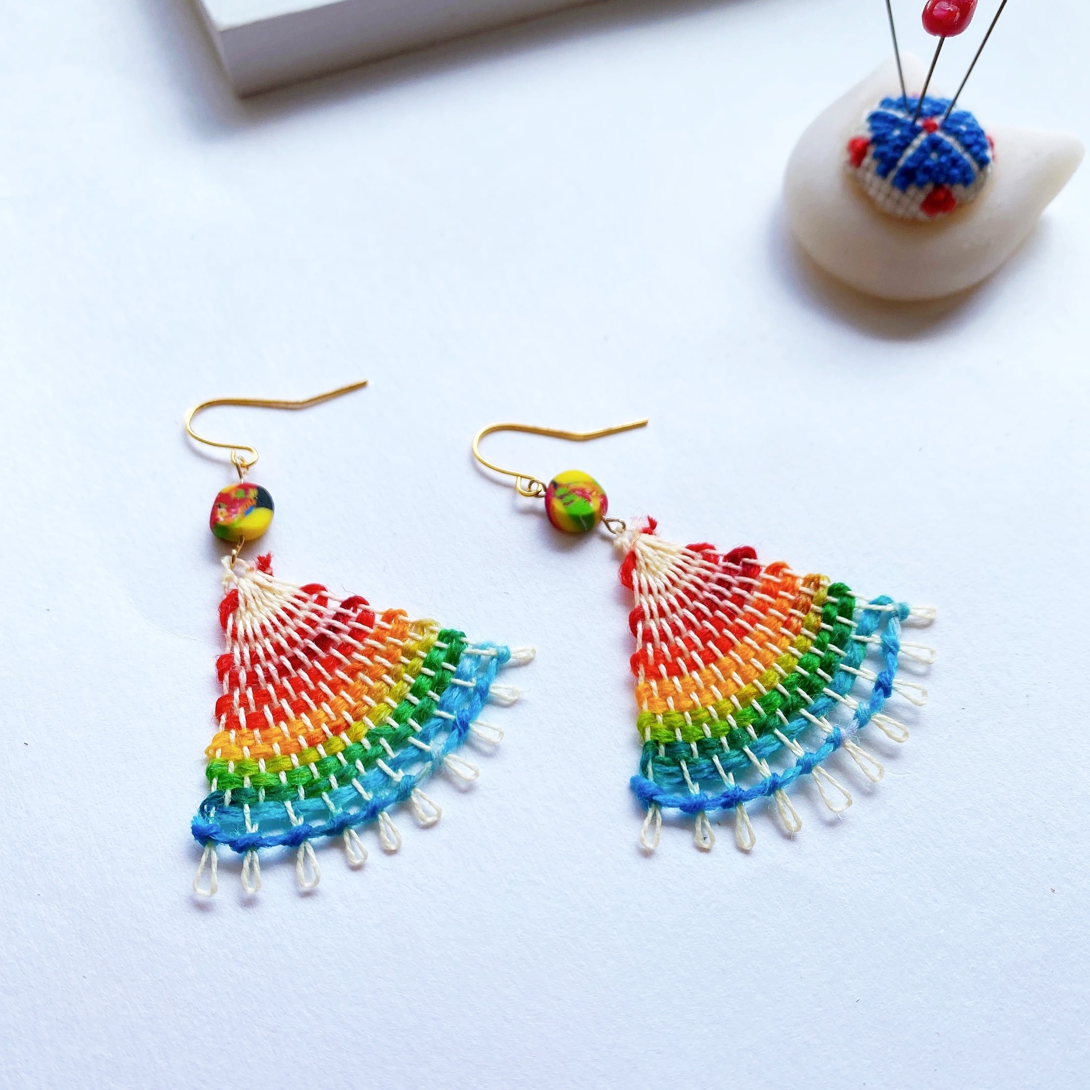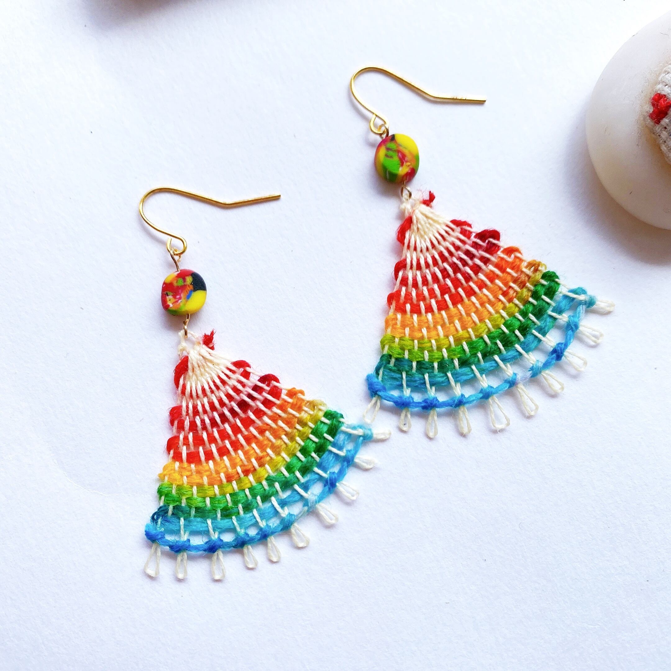 [材料]     手染め色・生成色糸・オリジナル樹脂ビーズ・ピアス金具