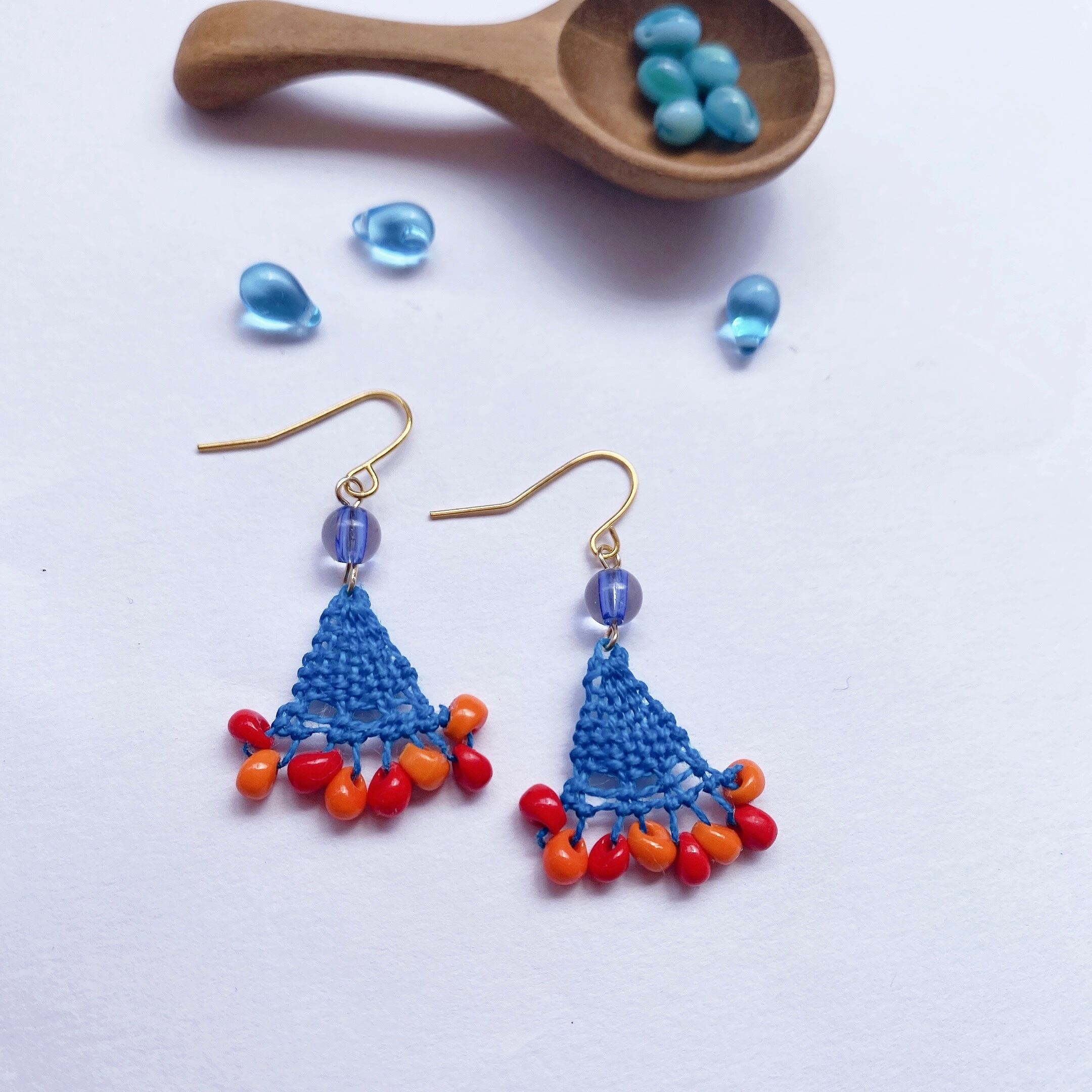 [材料]     水色糸・ガラスビーズ・ピアス金具