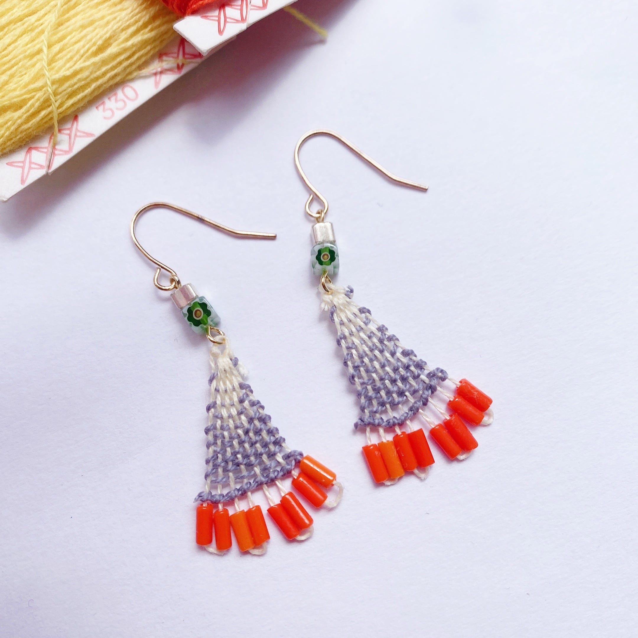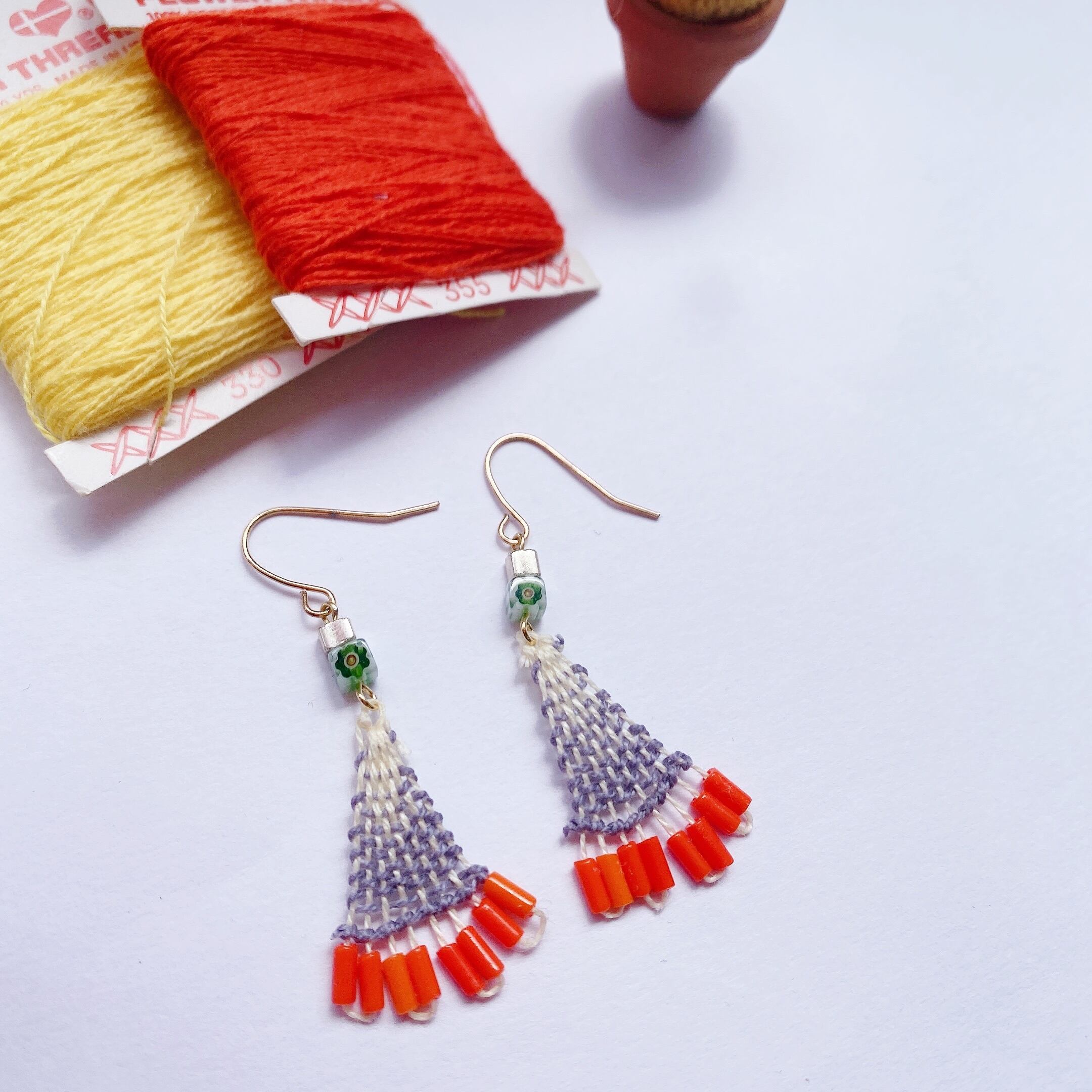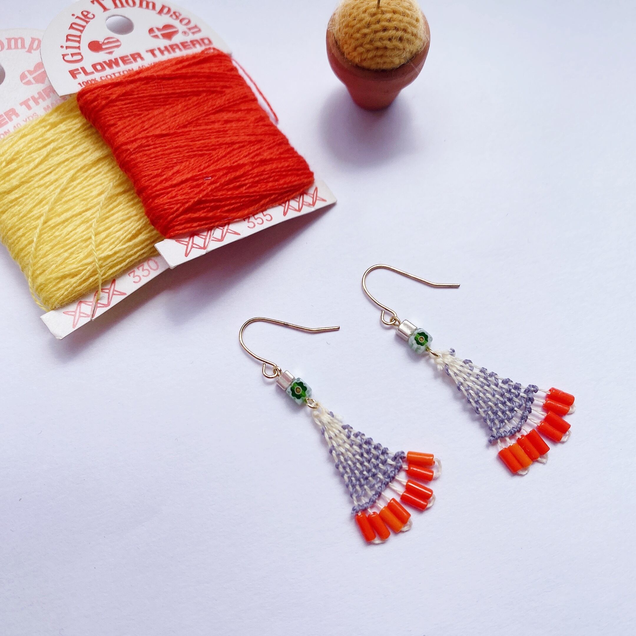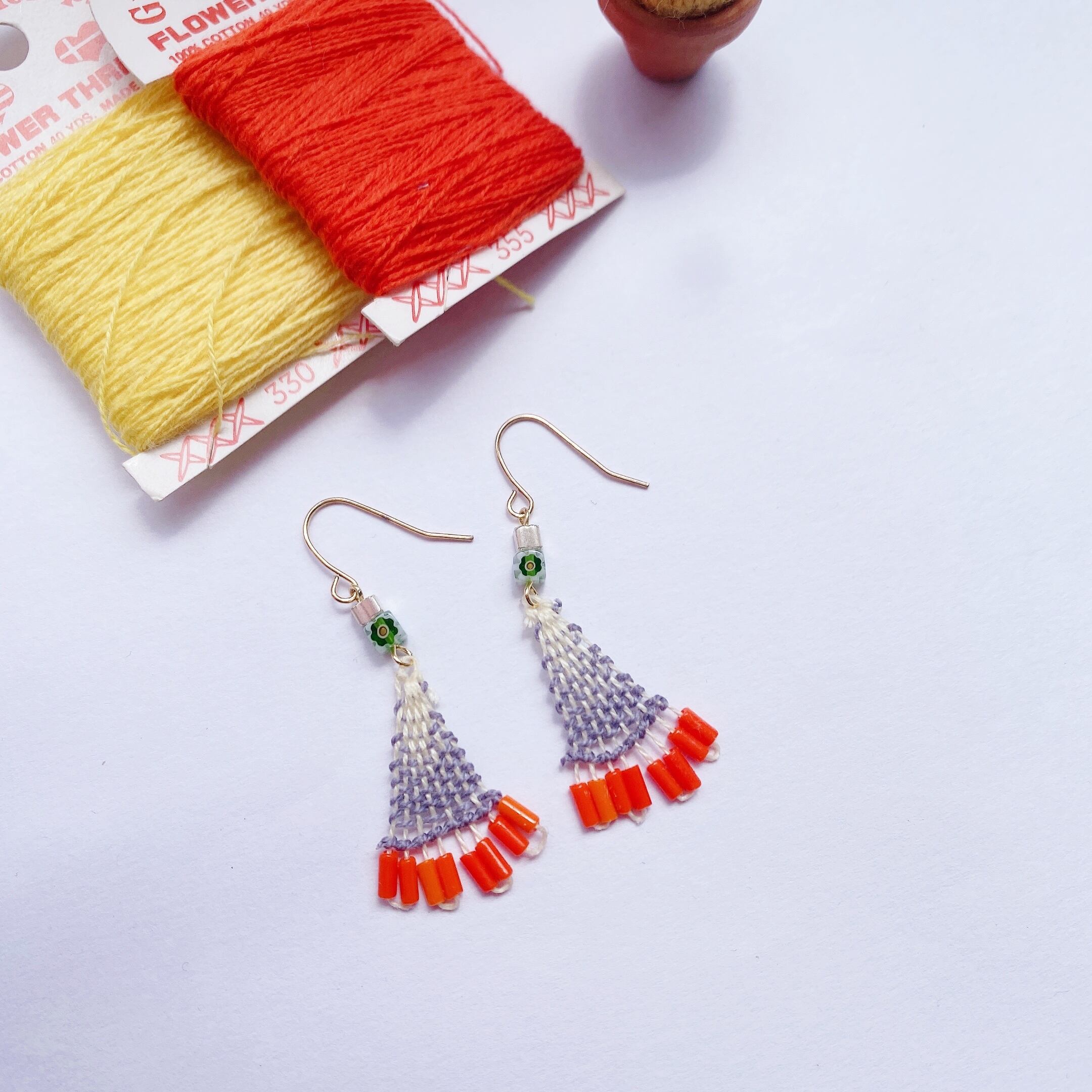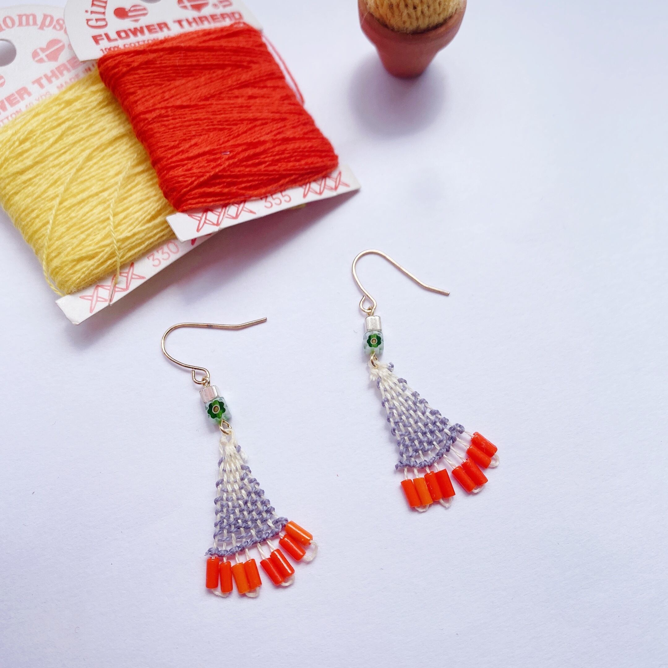 [材料]     薄いイエロー糸・グレー糸・ガラスビーズ・ピアス金具