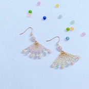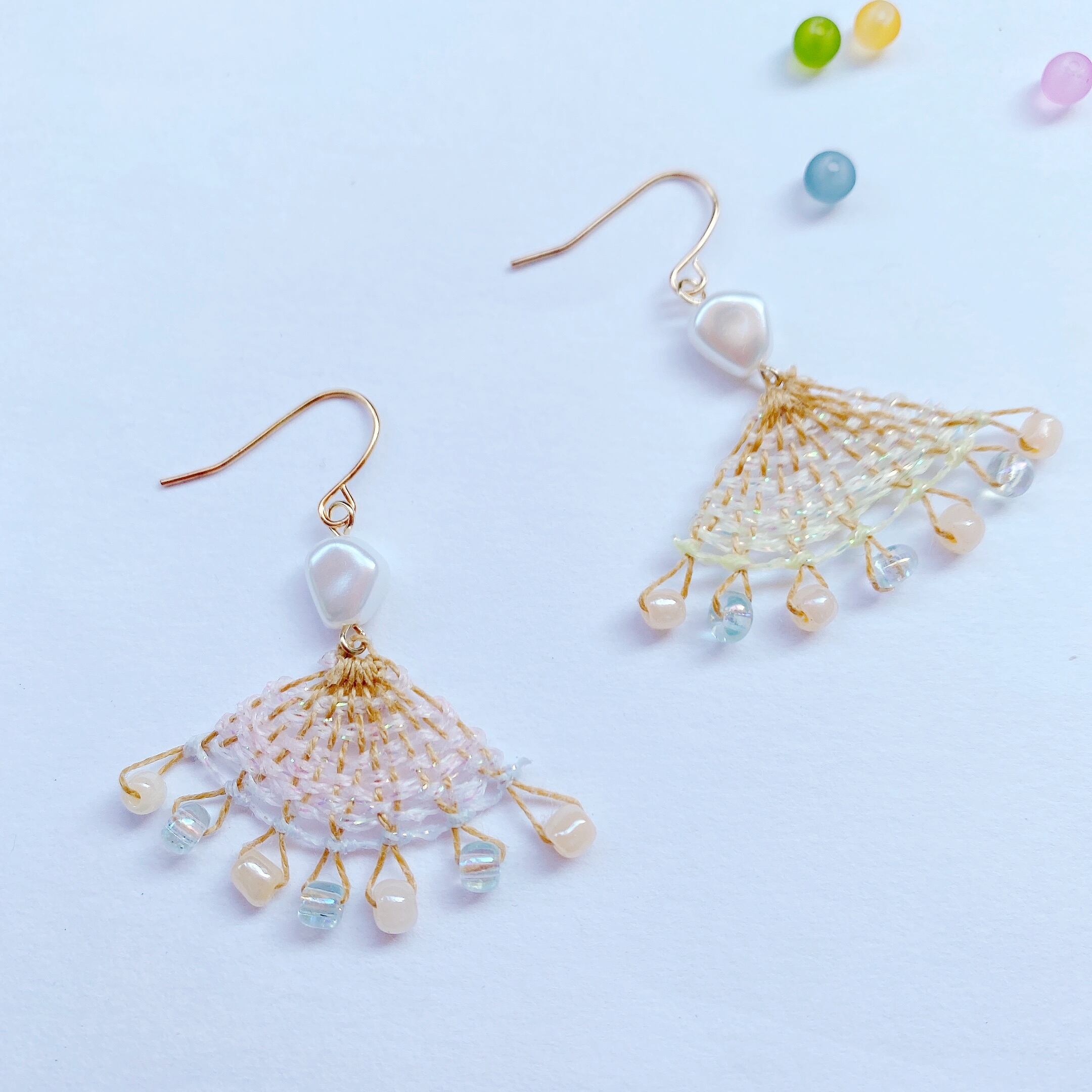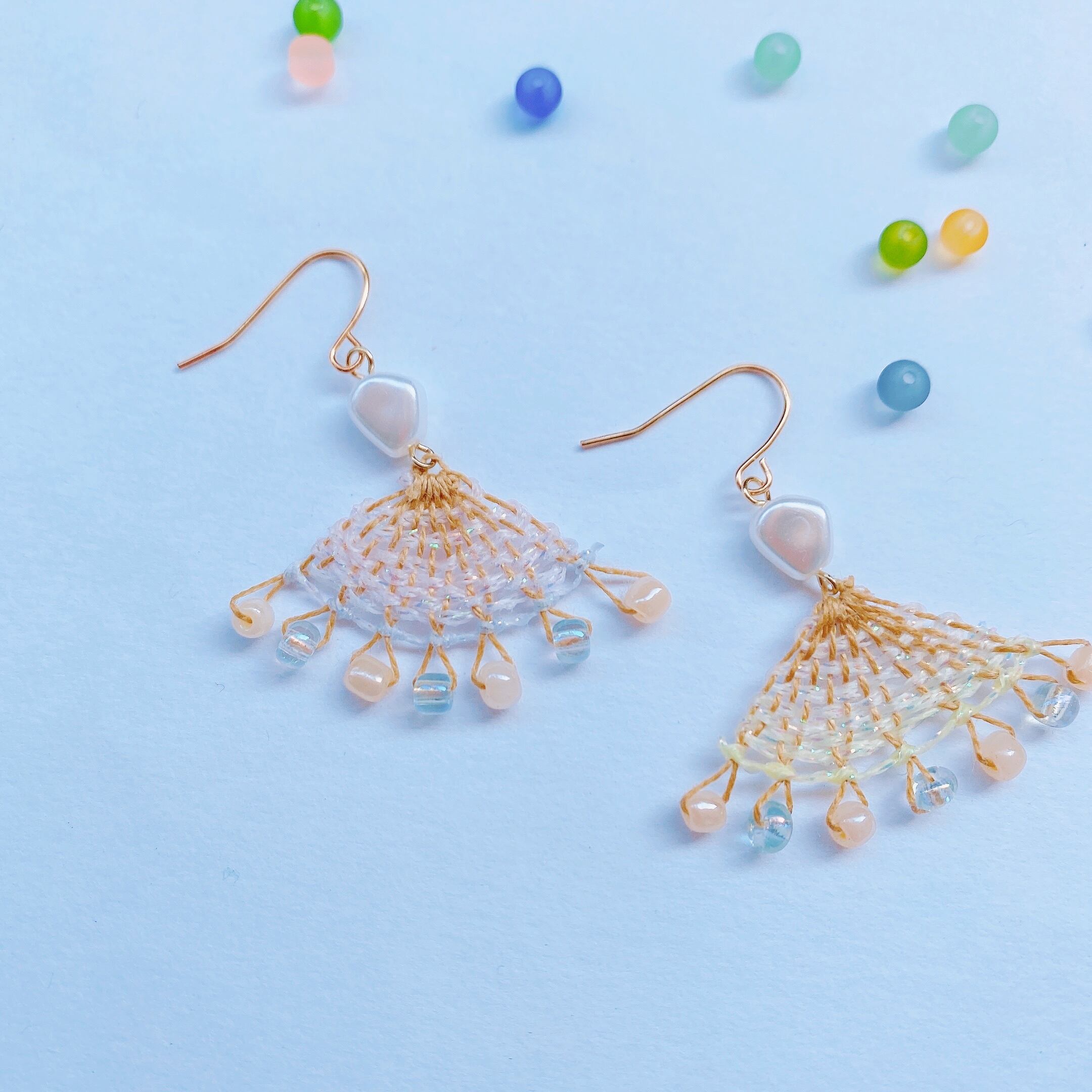 [材料]     薄いブラウン色糸・シルク手染め糸・ガラスビーズ・ピアス金具