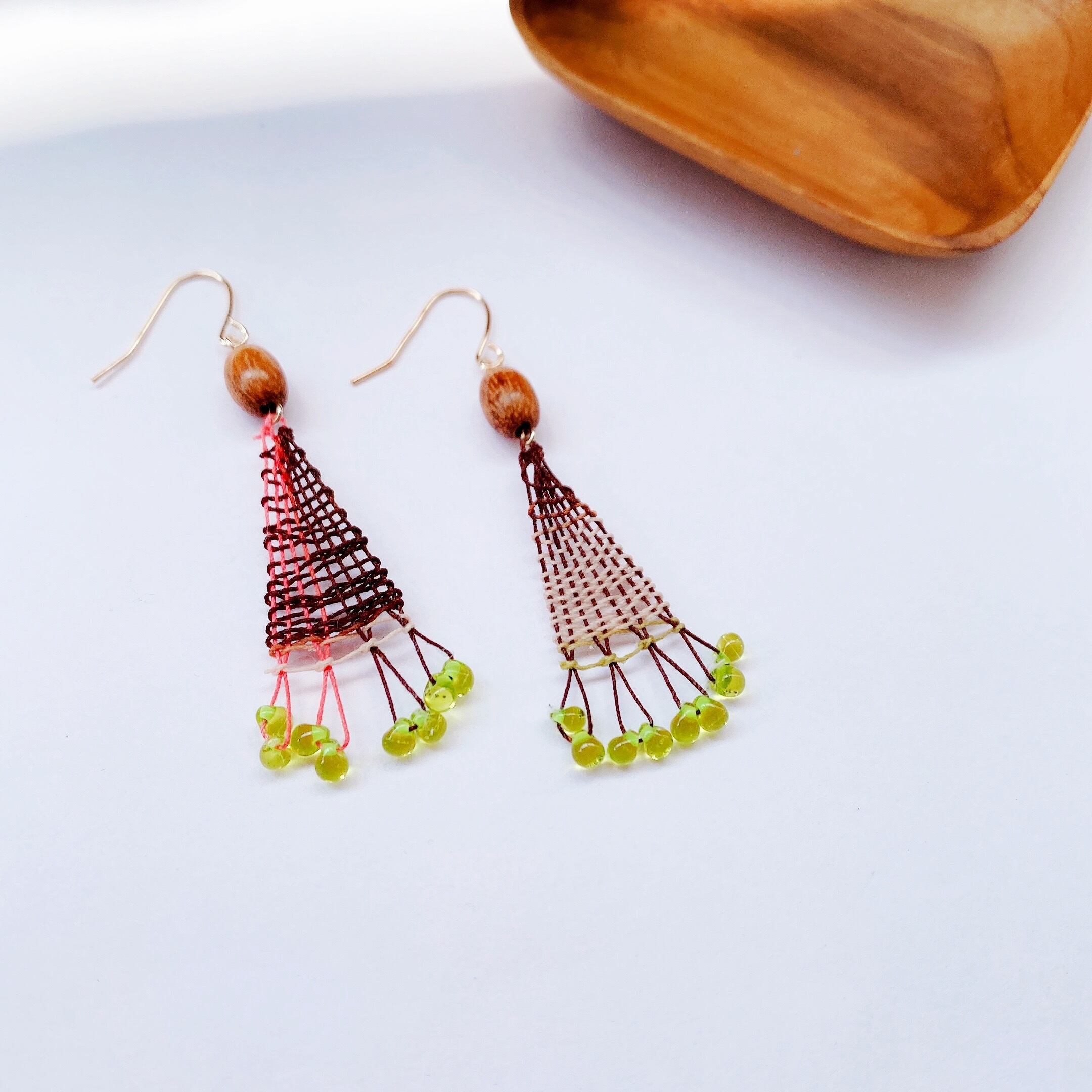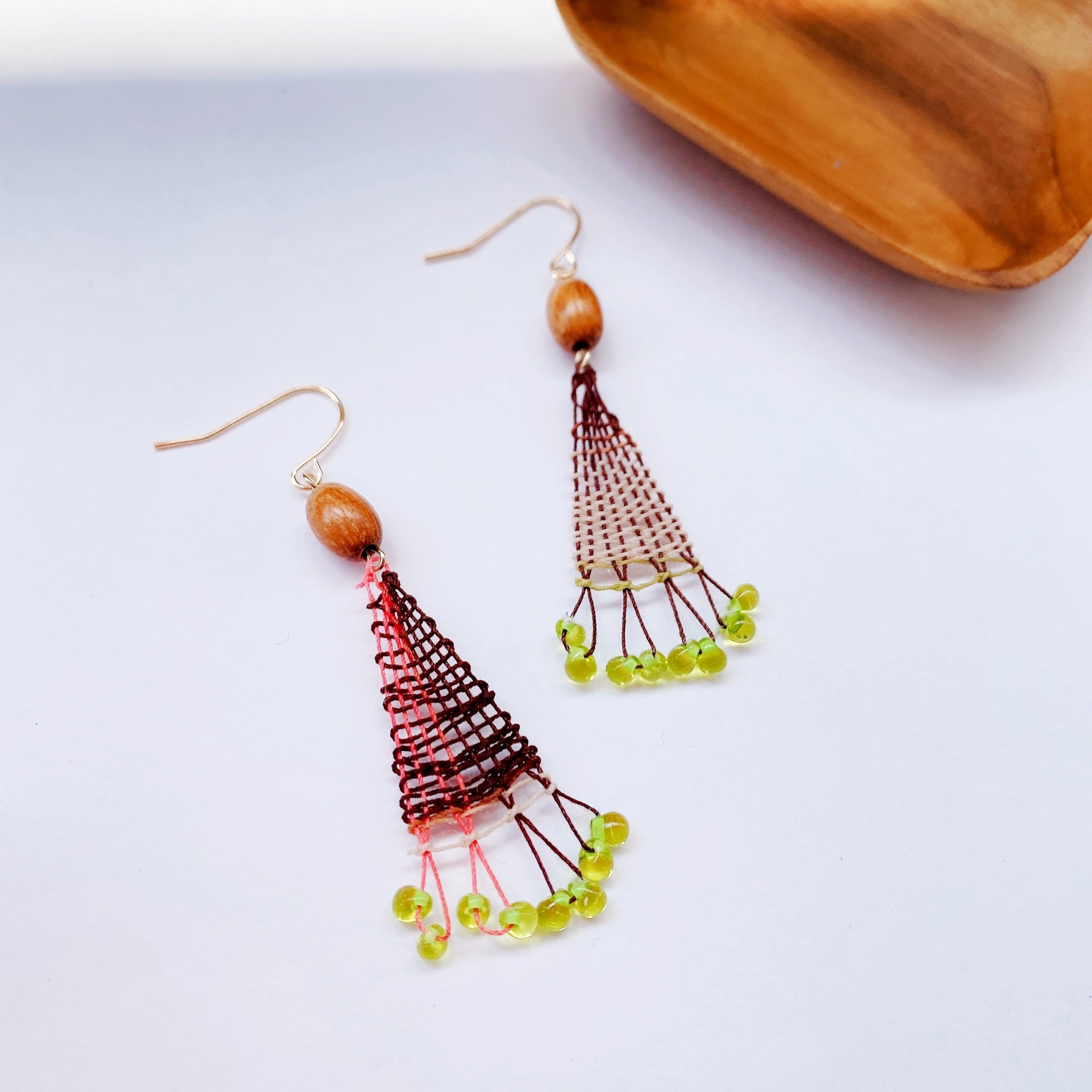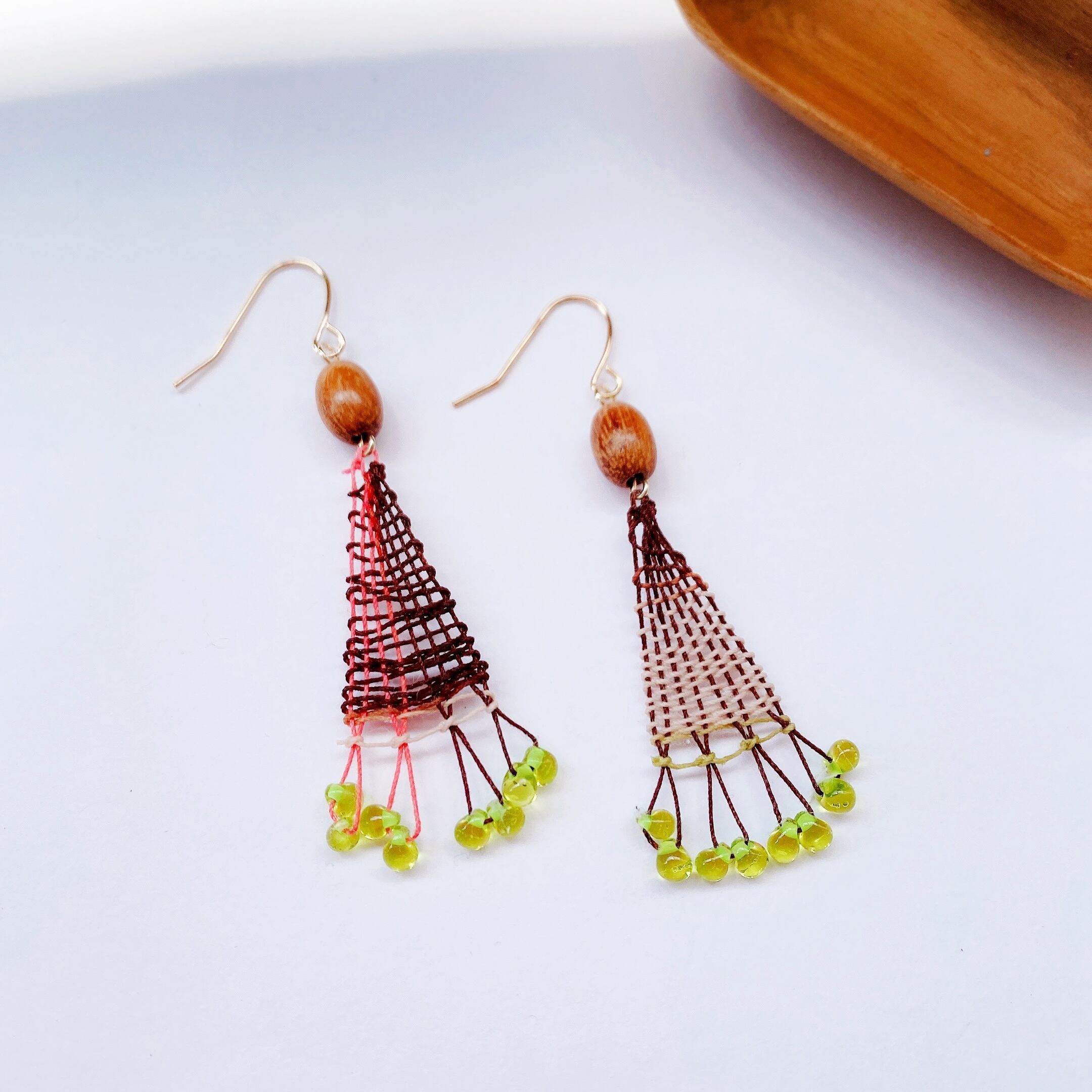 レトロなピスタチオビーズのニャンドゥティのピアス