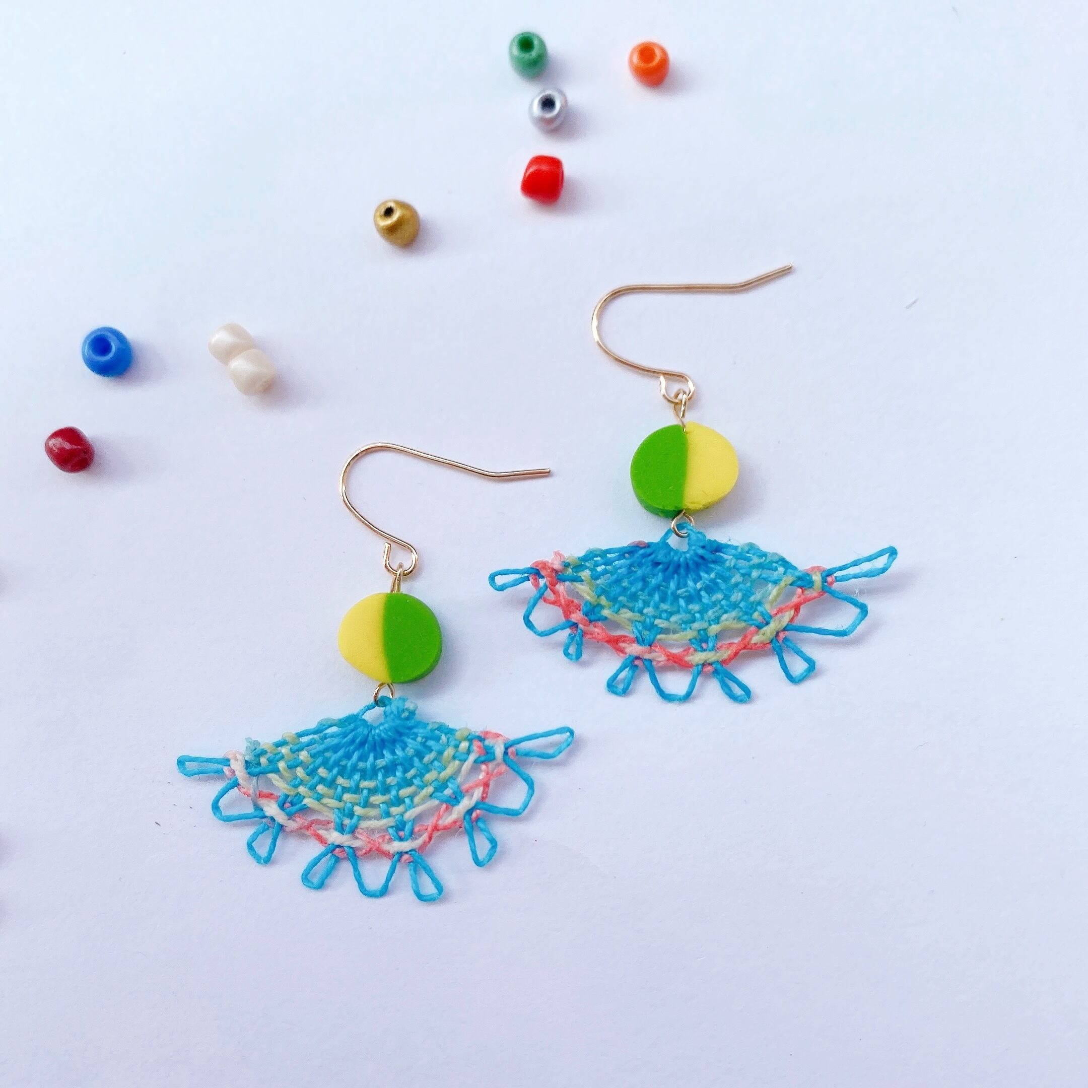[材料]     水色糸・グラデーション糸・樹脂オリジナルビーズ・ピアス金具