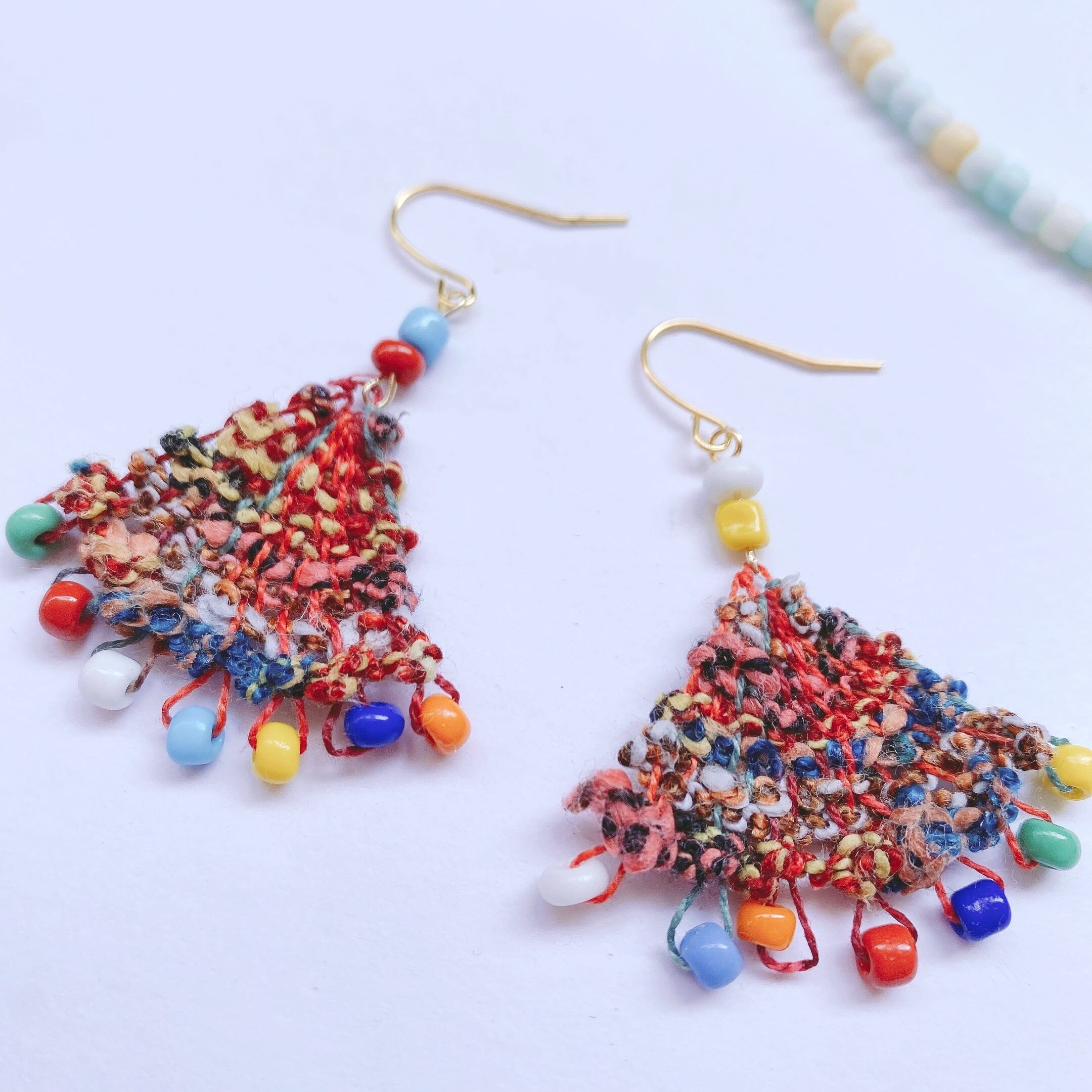 [材料]     変わりカラフル糸・グラデーション糸・ガラスビーズ・ピアス金具