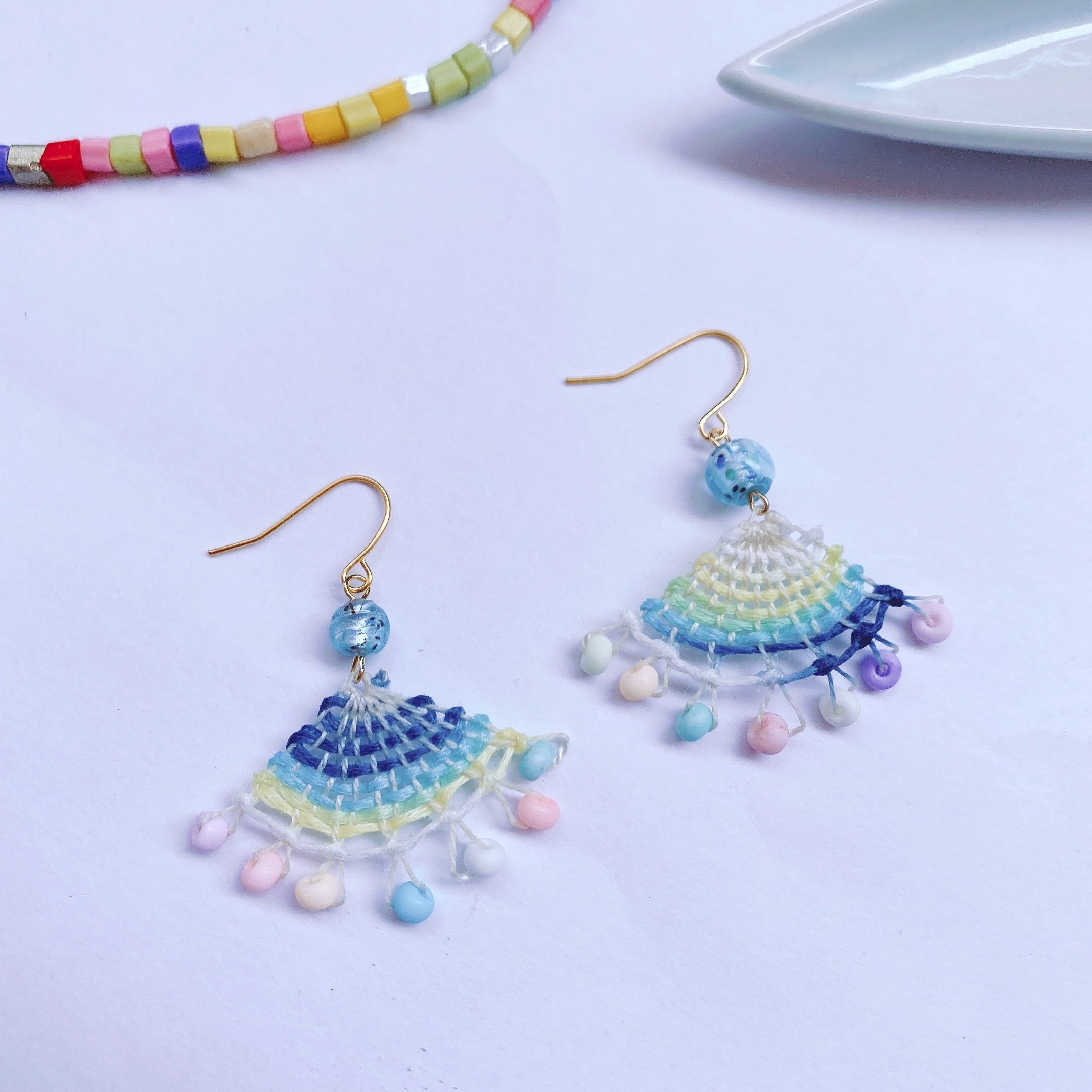 [材料]     ホワイト糸・グラデーションカラー糸・ガラスビーズ・ピアス金具