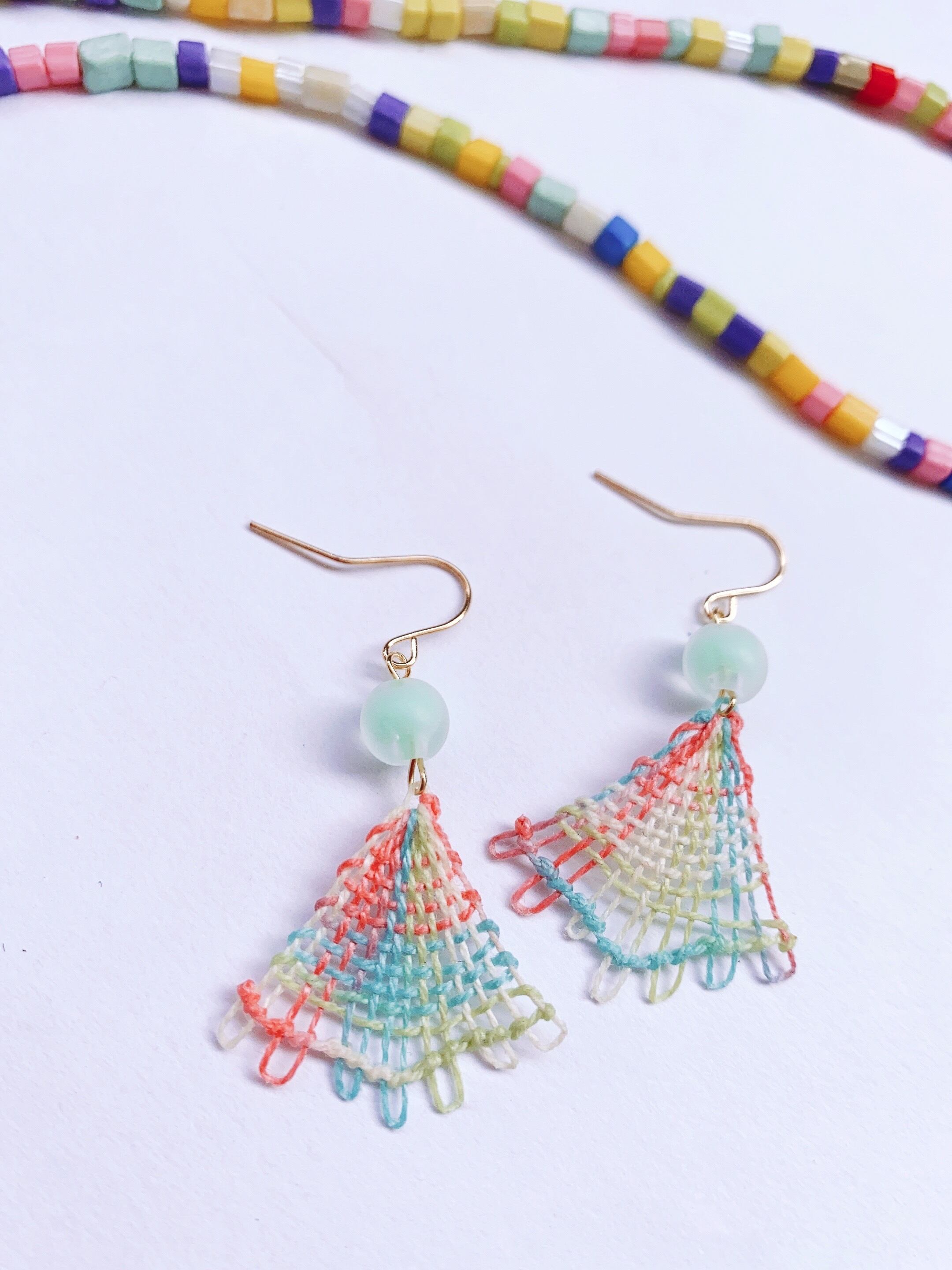 [材料]      DMCグラデーション糸・アクリルビーズ・ピアス金具