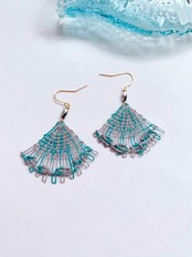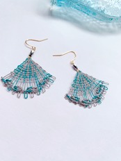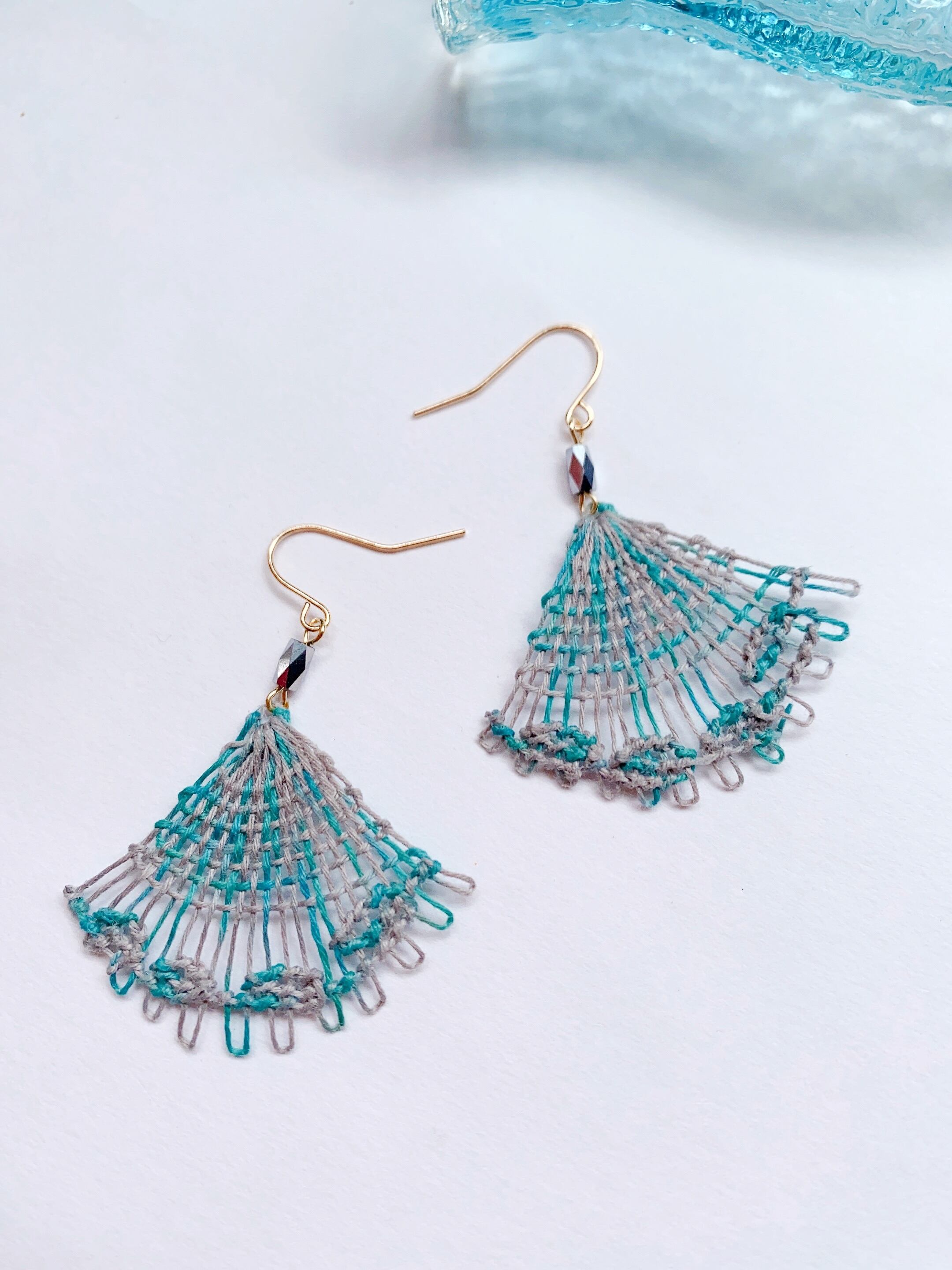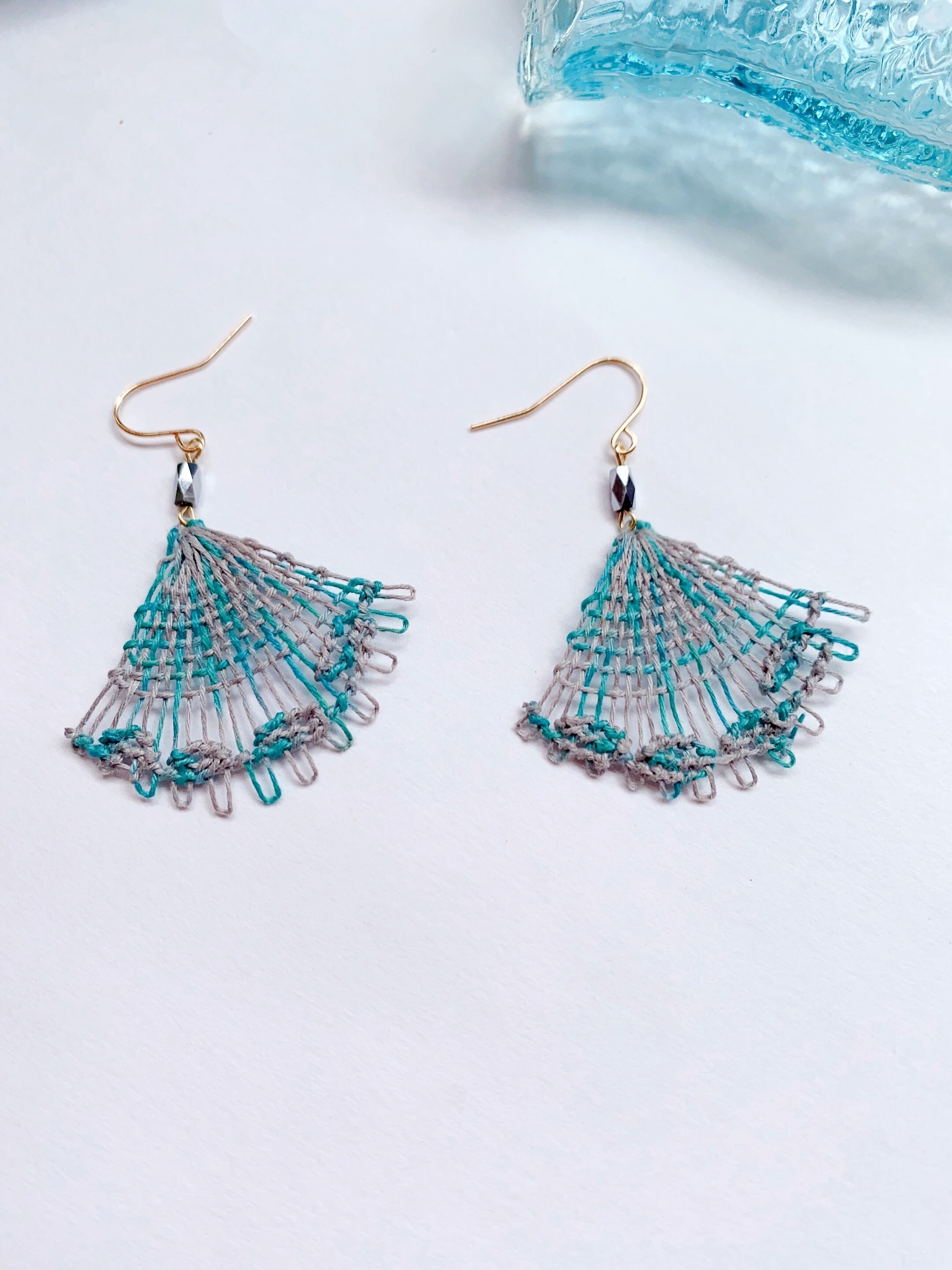[材料]      グレー+ターコイズ糸・ガラスビーズ・ピアス金具