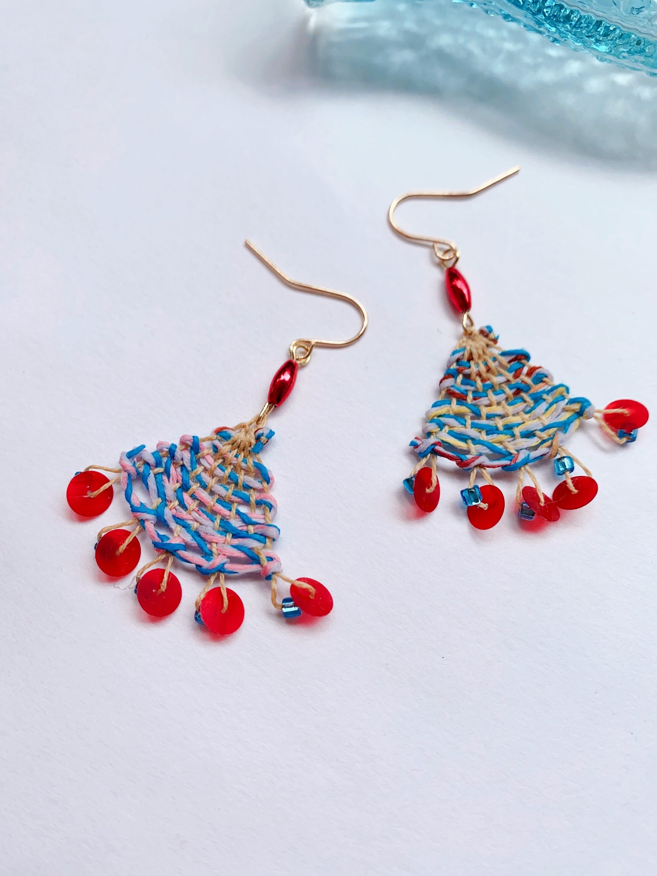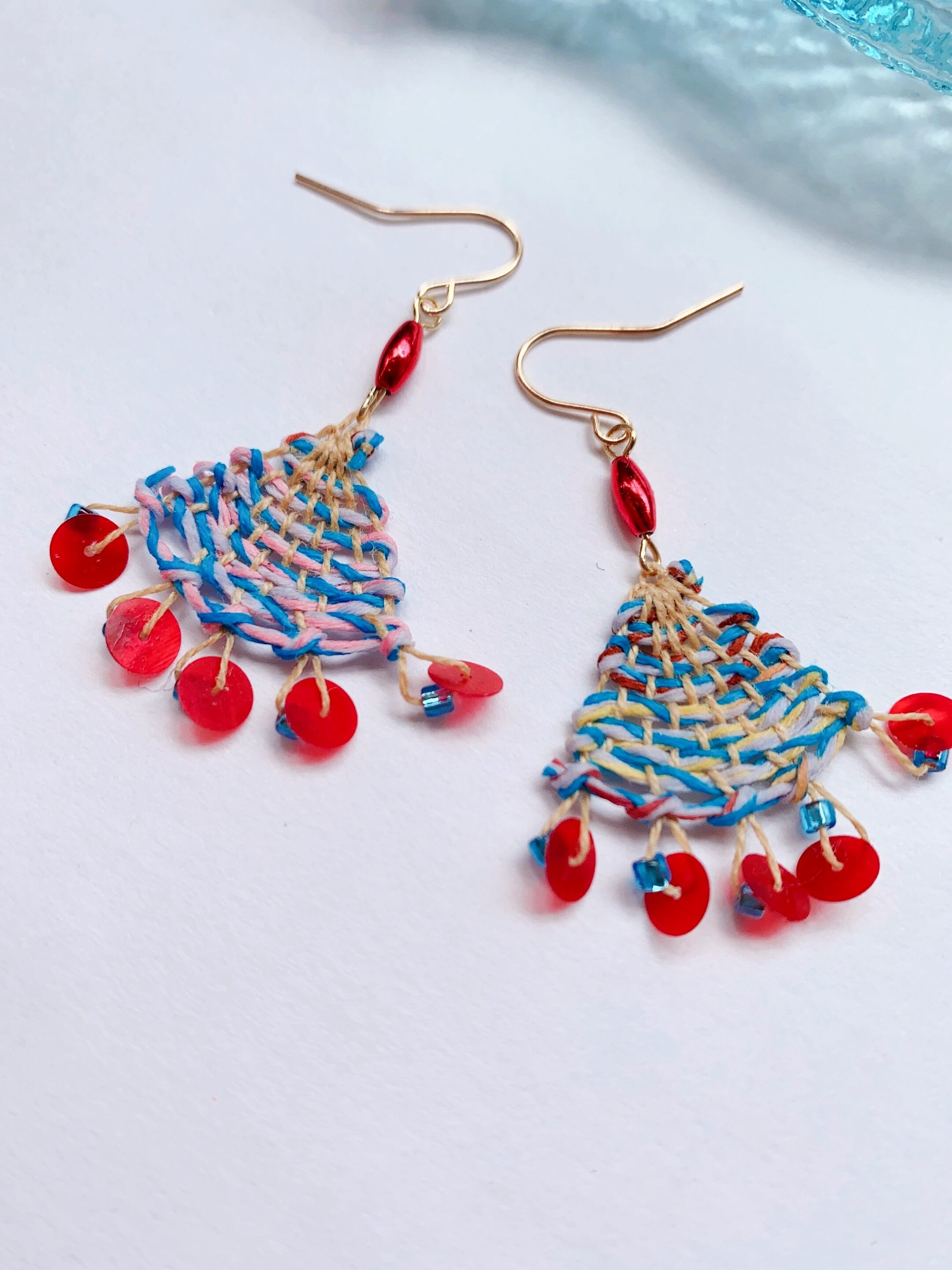 [材料]      生成色糸・グラデーション糸・ガラスビーズ・スパンコール・ピアス金具