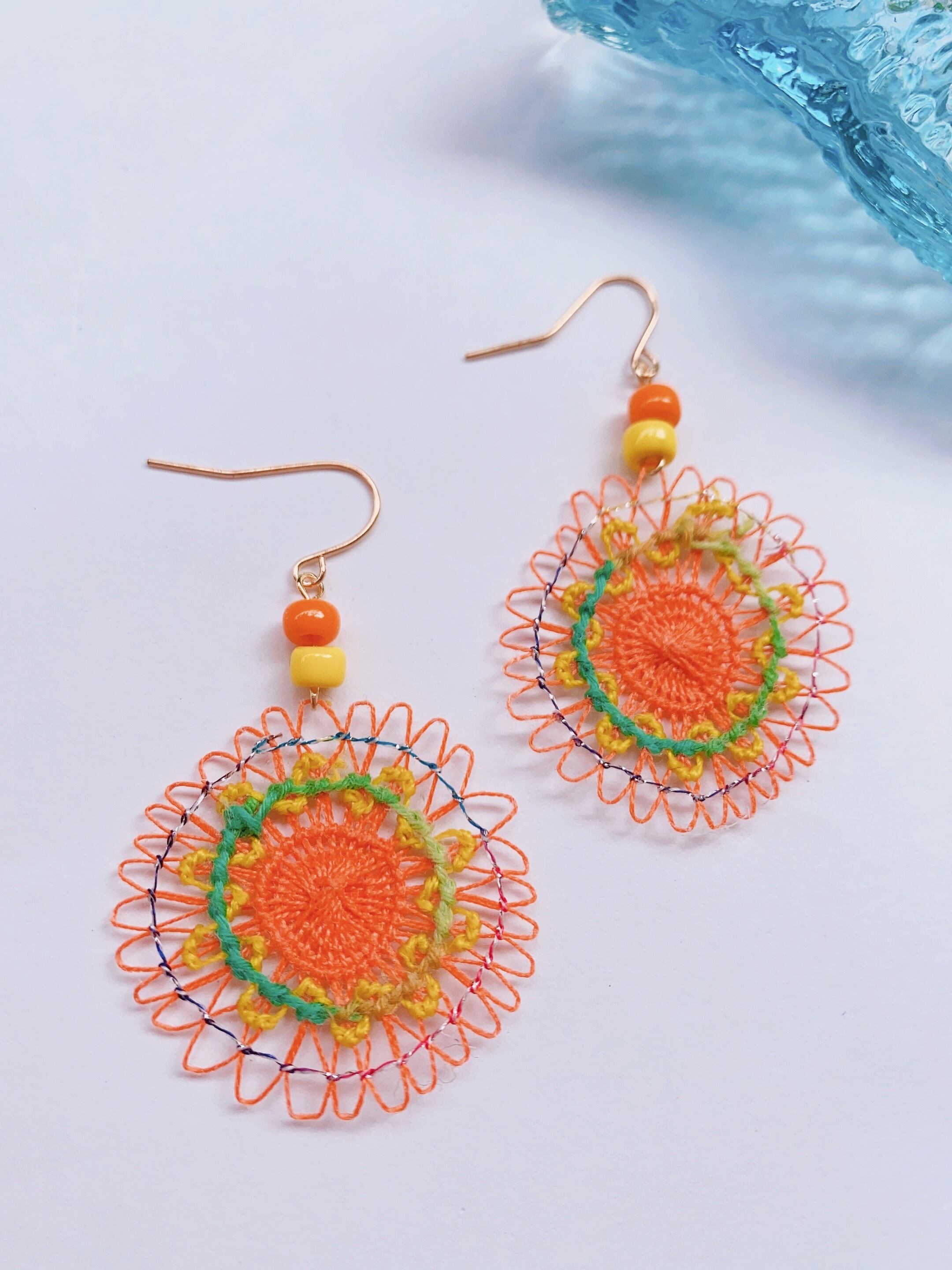 [材料]      オレンジ・グラデーション・シルバー糸・ガラスビーズ・ピアス金具