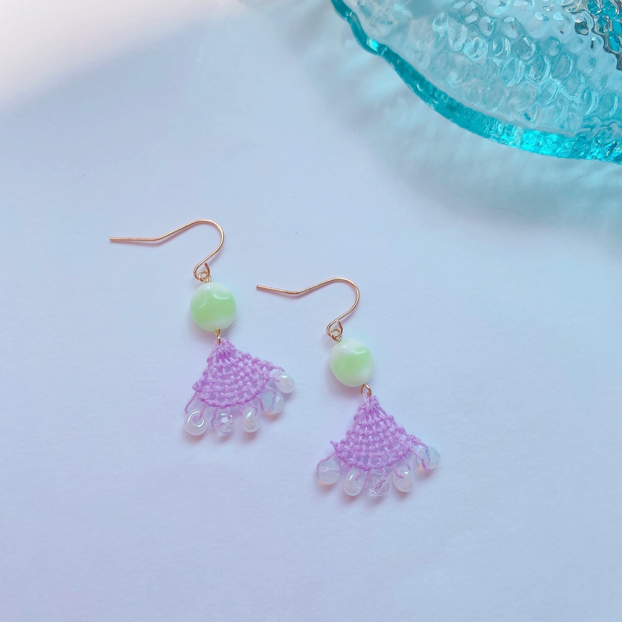 [材料]       薄いパープル糸・ガラスビーズ・ピアス金具