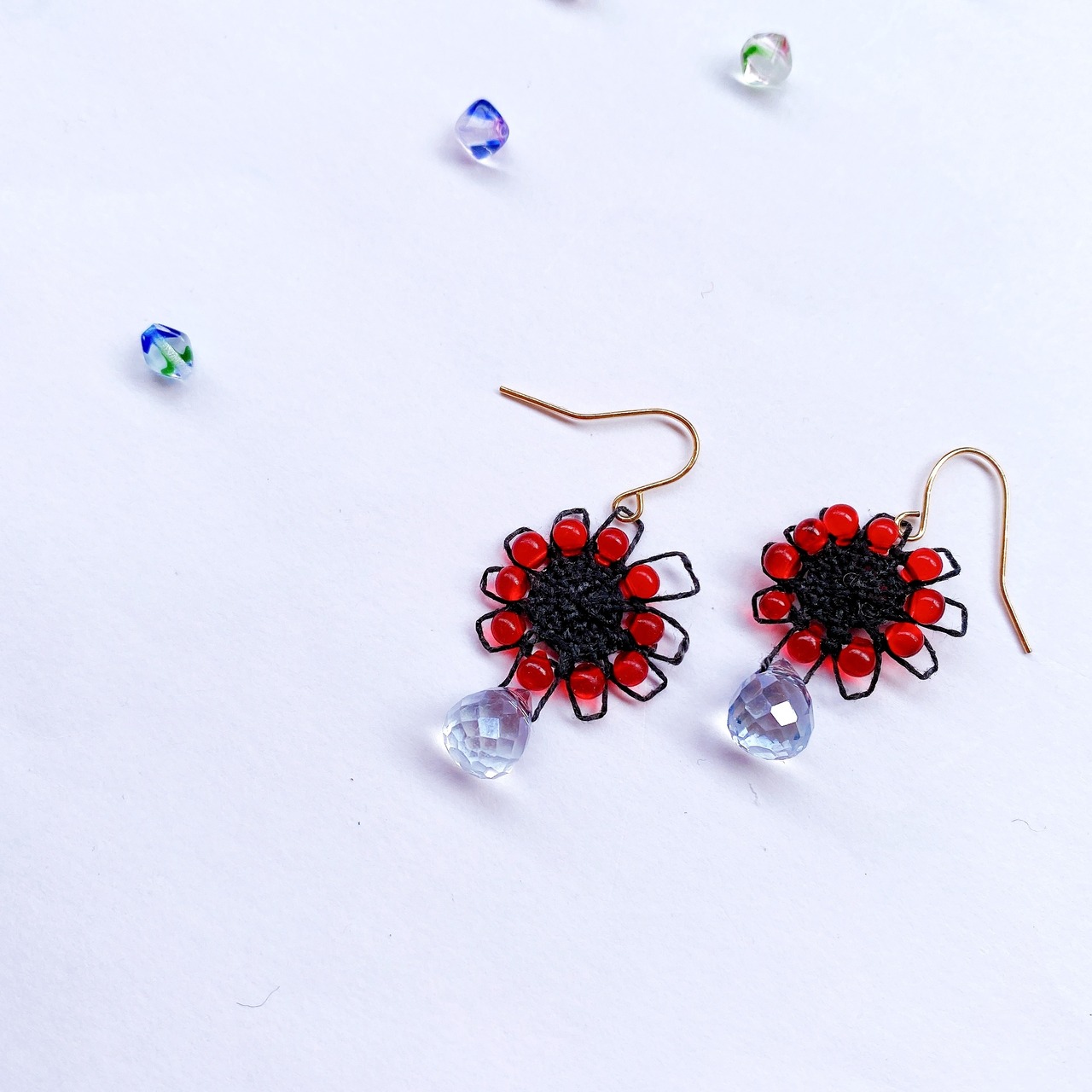 [材料]      黒色糸・ガラスビーズ・ピアス金具
