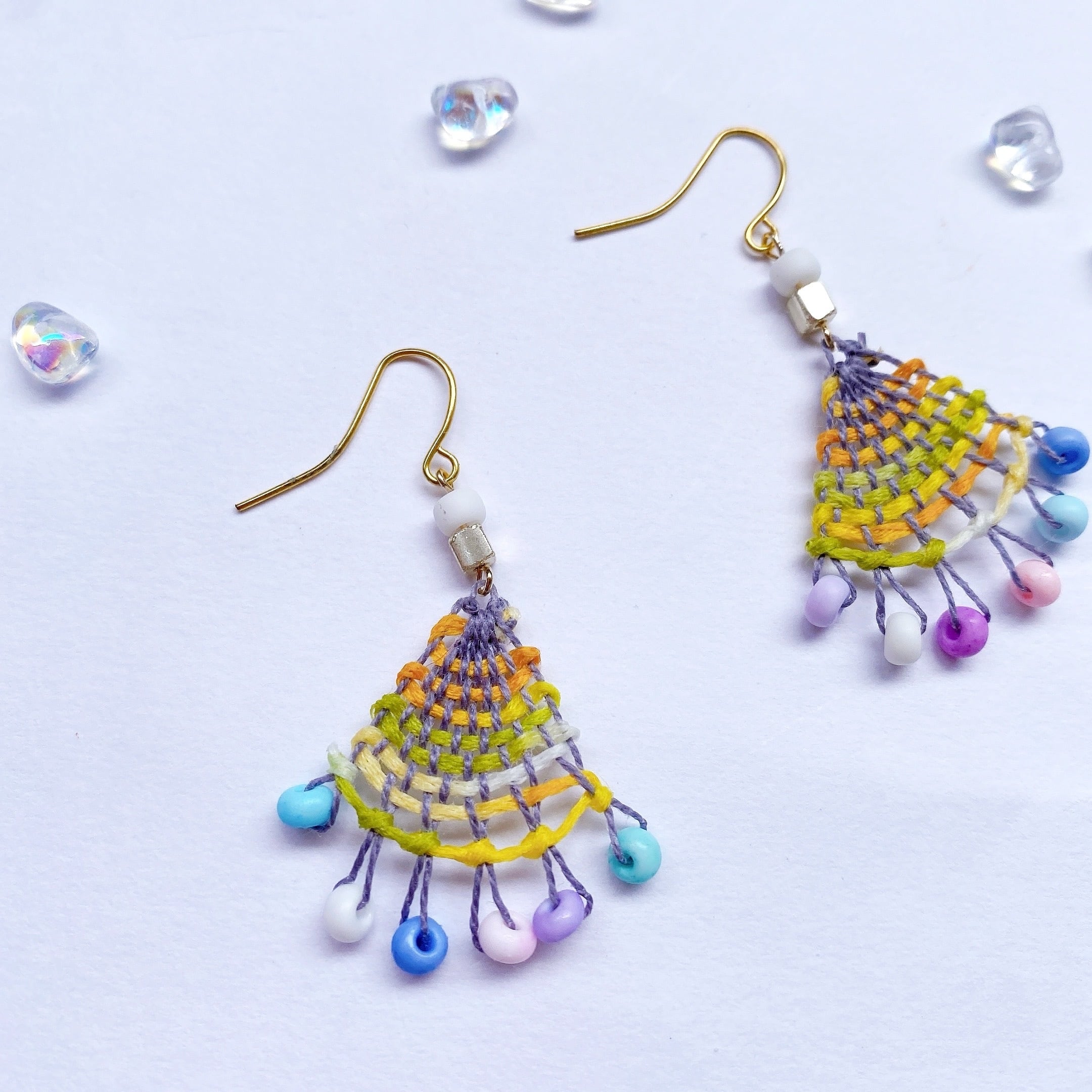 [材料]      グレー色糸・グラデーション糸・ガラスビーズ・ピアス金具