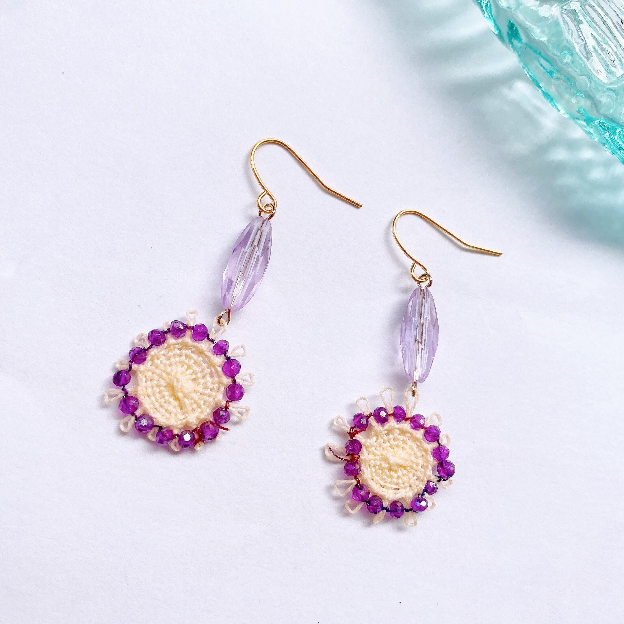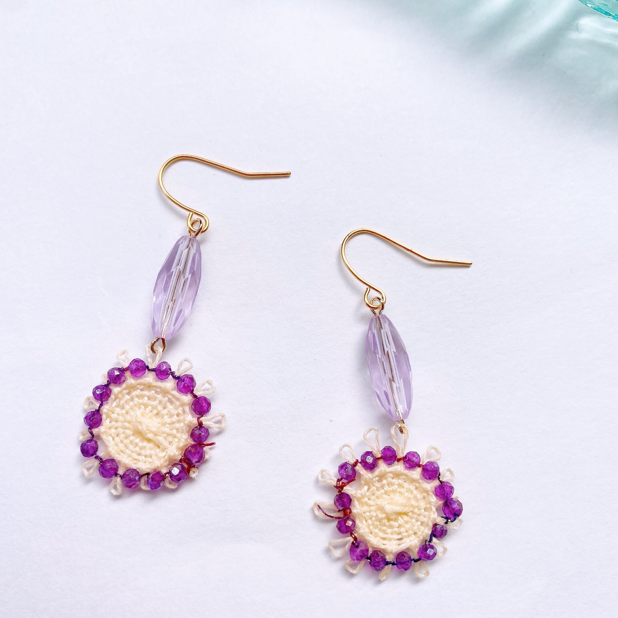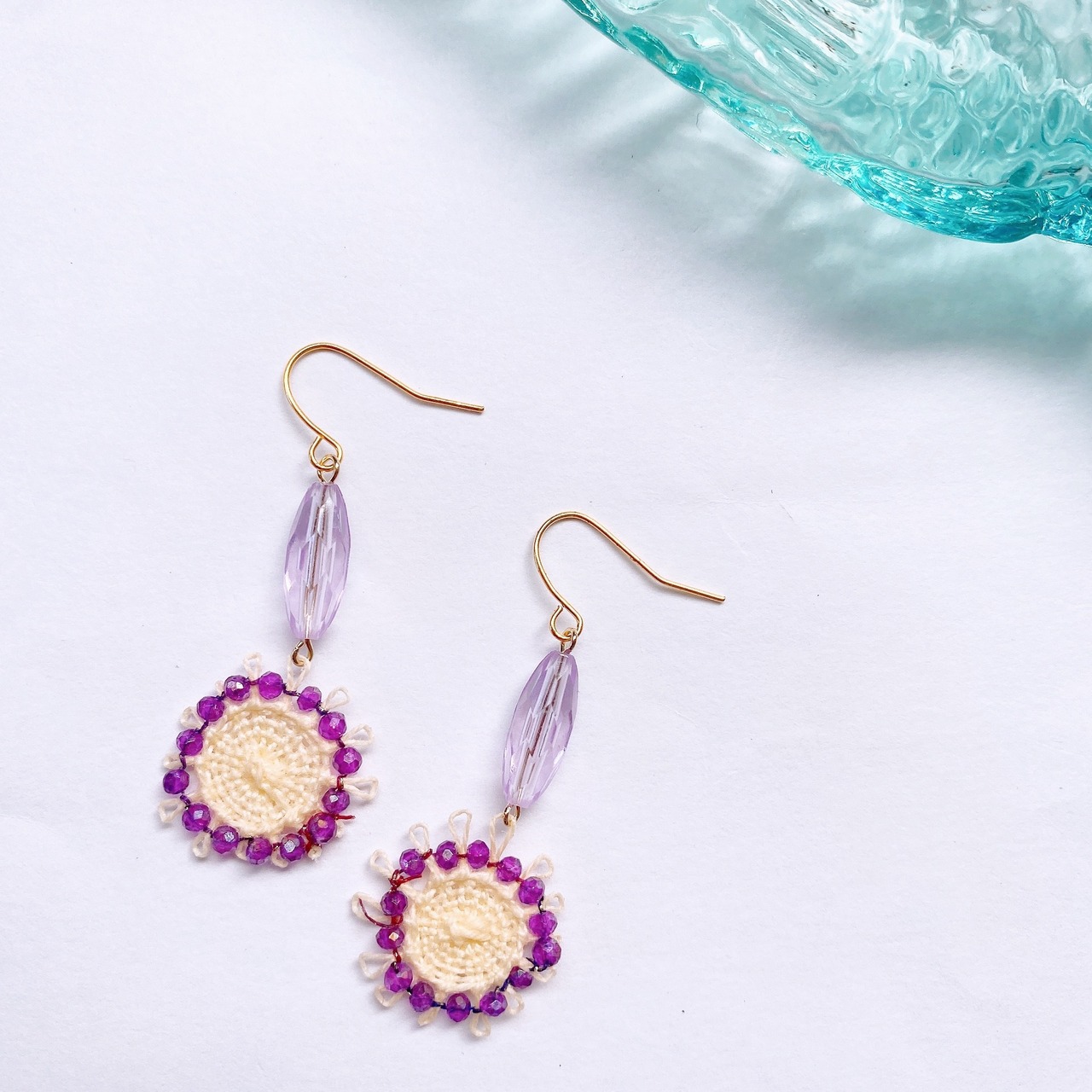 しゃりしゃりとしたシャーベットのようね色合いのダイヤカットな葡萄色のビーズと薄いイエローを合わせました。