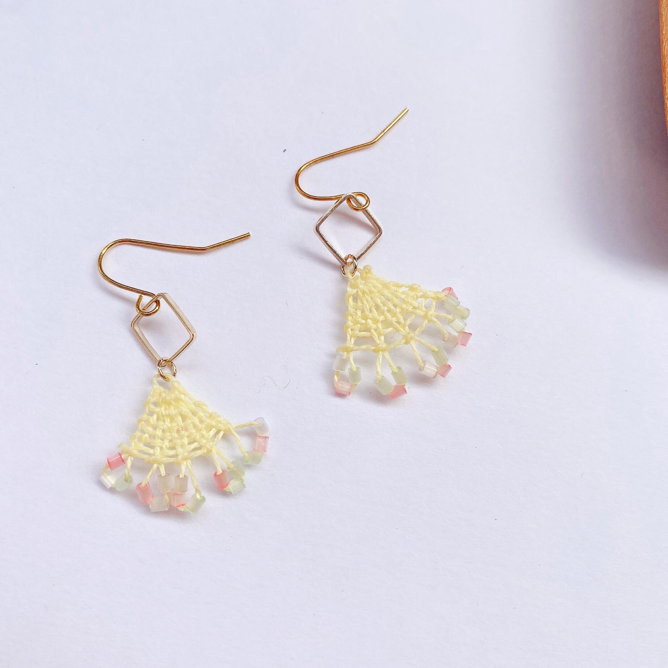 [材料] 黄色糸・ガラスビーズ・ピアス金具